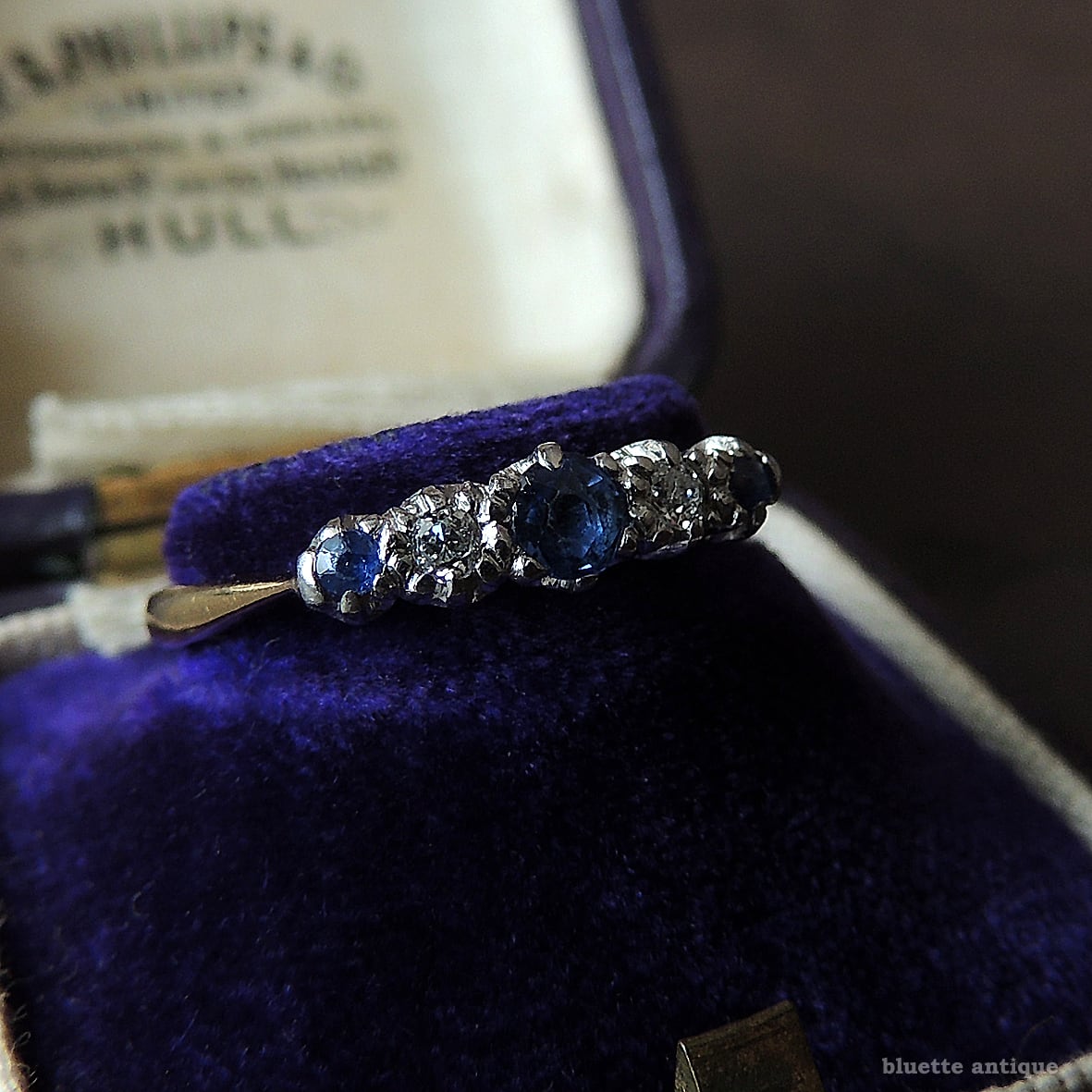 アンティークジュエリー エドワーディアン 18ctゴールド 天然サファイア 天然ダイヤモンド リング【約8.5号】(ソーティングメモ付)