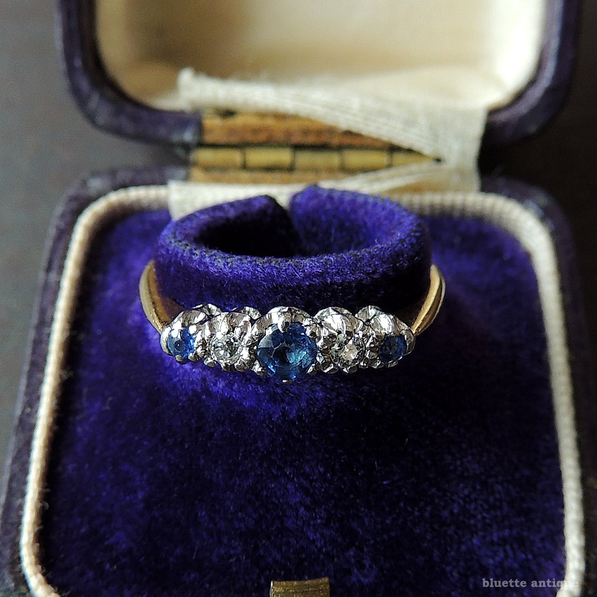 ダイヤモンドはオールドカット。鋭利な煌めきが美しくサファイアを引き立てています。
