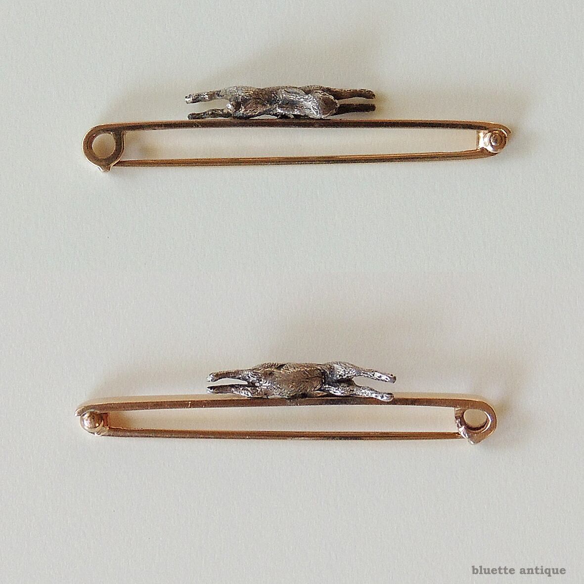 ヴィクトリア朝では、狩猟モチーフ(フォックス、ホース、ハウンド)と並んで、ウサギも「追われる獲物」として登場。タイピンやピンブローチに採用されました。