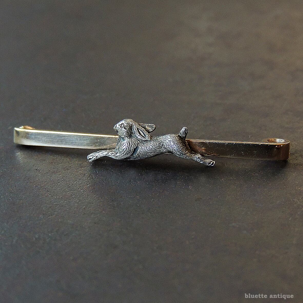針のコンディションはよく、全開しないタイプ、クラスプにきちんとおさまります。ラビットは立体的な形で、着けると衣服を大地にしてまさに走っているようです。バーに経年による黒ずみ等有りますが、全体的に素晴らしいコンディションの美しいブローチです。