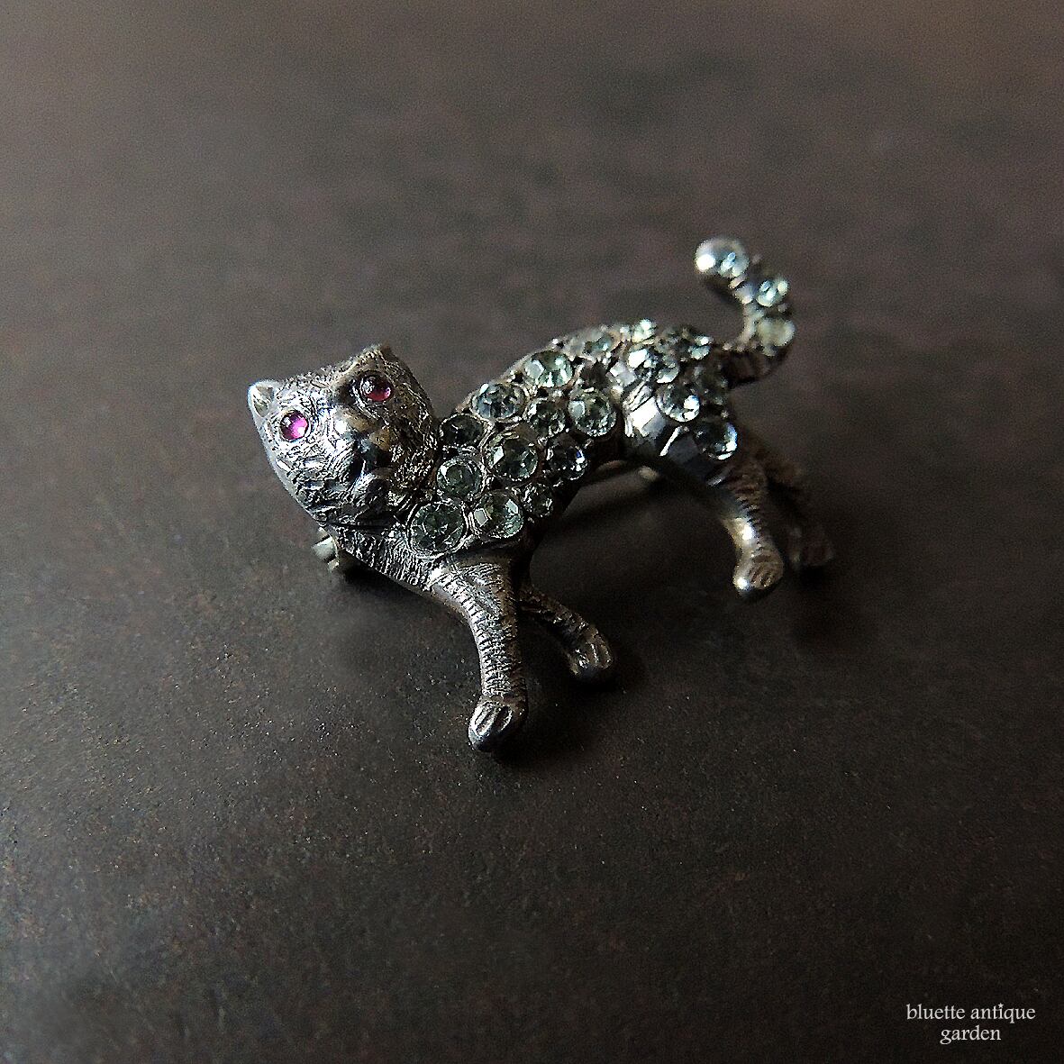 イギリスより、アンティーク、シルバー935、小さな猫のブローチです。
