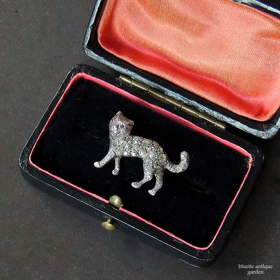 以前ご紹介した猫(グリーンの瞳)と同メーカーのブローチ。ずっと探していましたが、今回、数年ぶりに出合いました。こちらはユーモラスな顔立ちがチャームポイントの猫です。