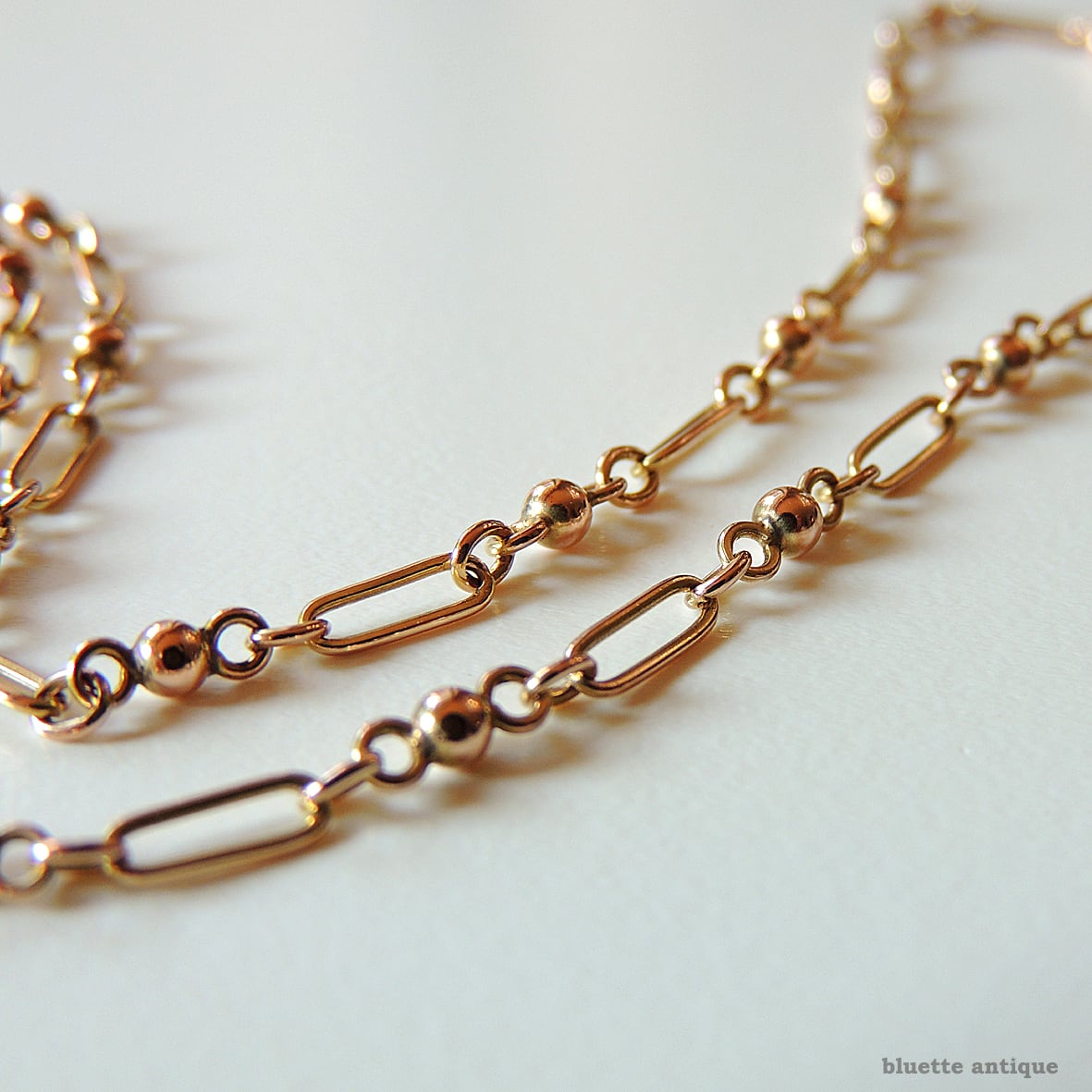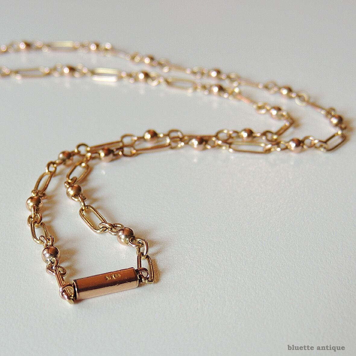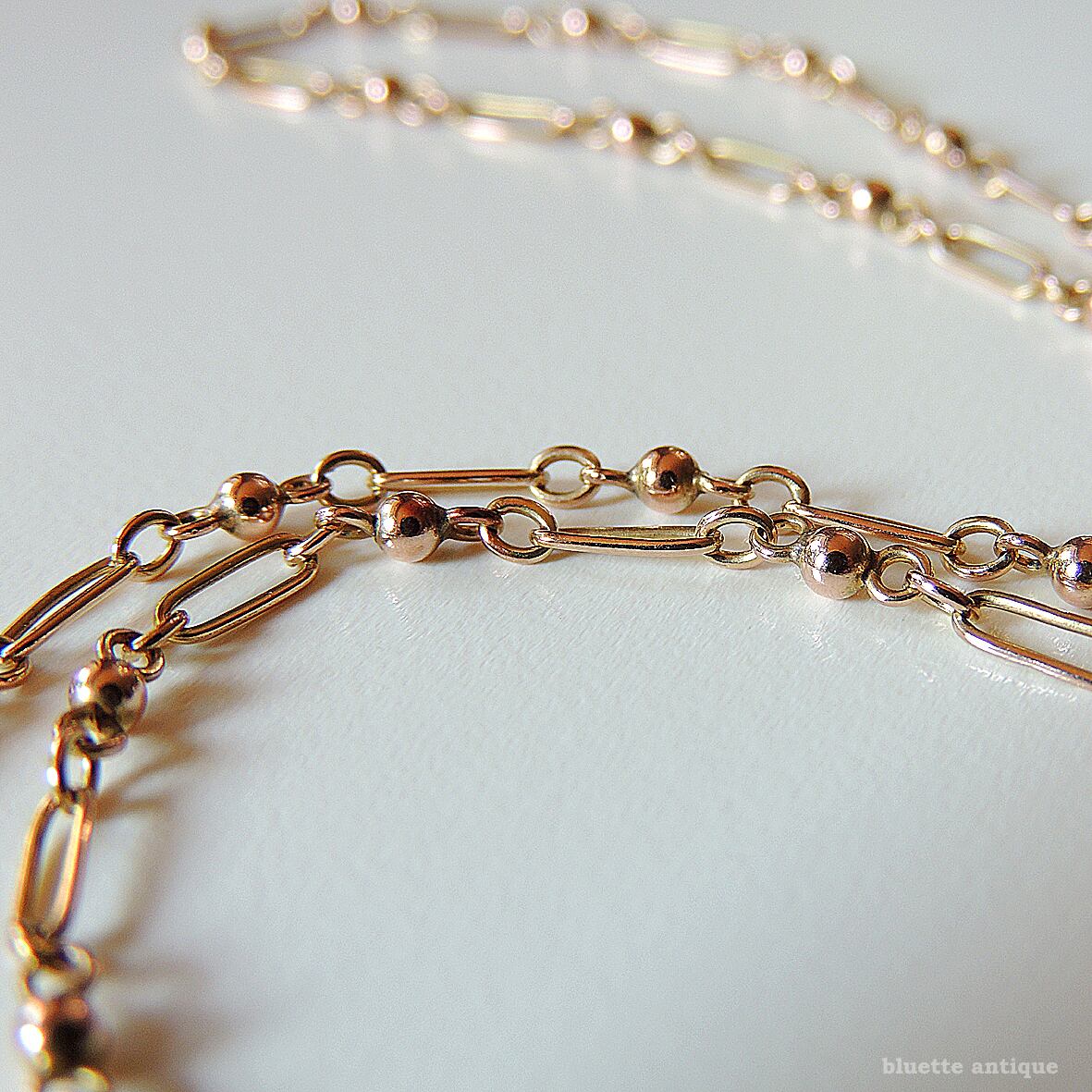 ゴールドの重量がしっかりと有り、当時の職人の手仕事を堪能できる素晴らしいチェーン。単体でも十分美しくエレガントですが、様々なペンダントトップとも合わせる事ができ、一つ持っていると重宝します。