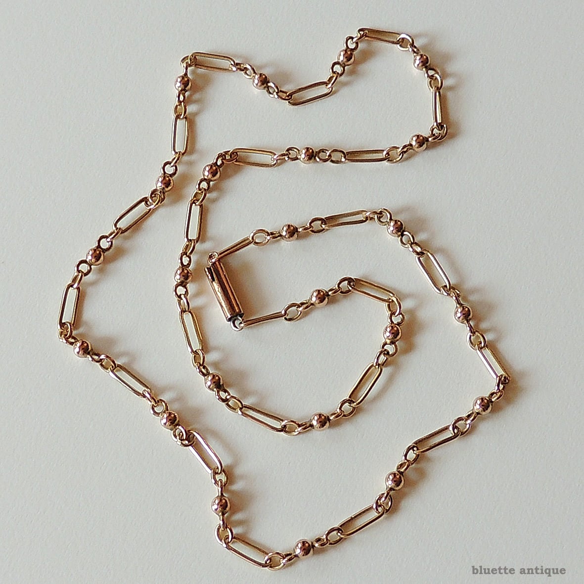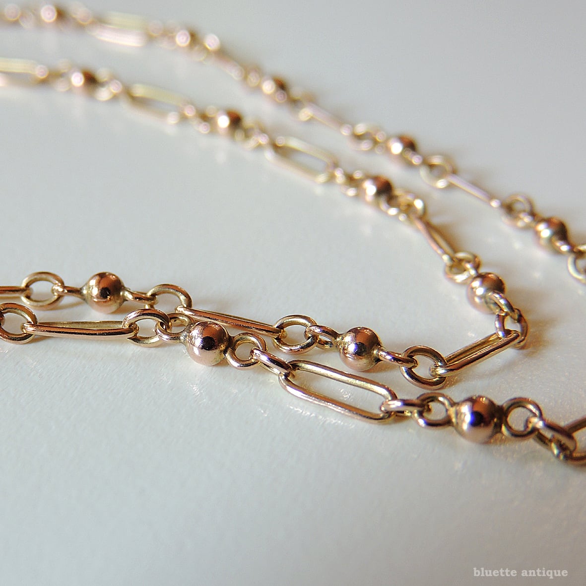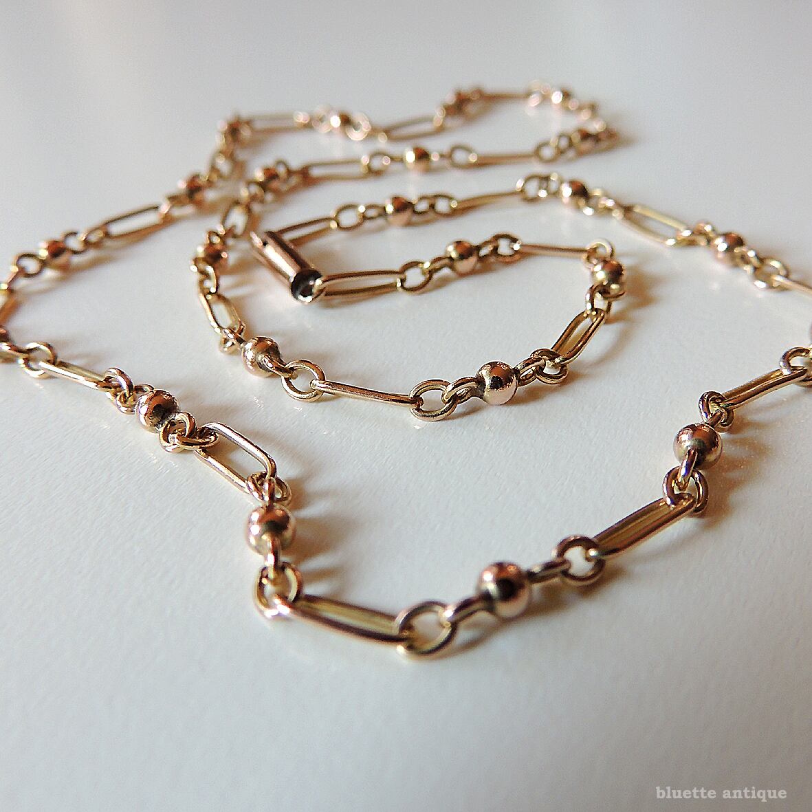 ゴールドの重量がしっかりと有り、当時の職人の手仕事を堪能できる素晴らしいチェーン。単体でも十分美しくエレガントですが、様々なペンダントトップとも合わせる事ができ、一つ持っていると重宝します。