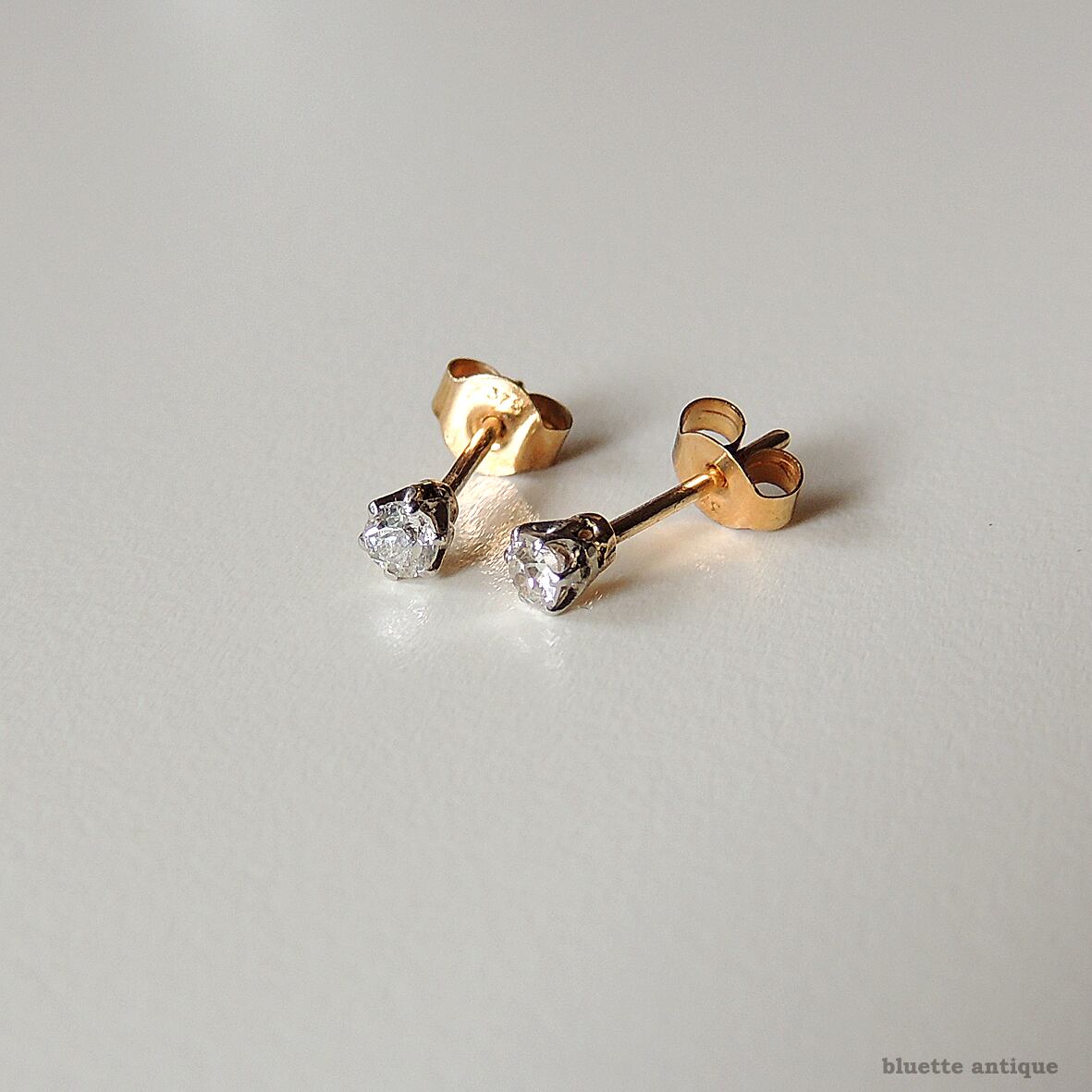 イギリスより、アンティーク、天然ダイヤモンドのスタッドピアスです。