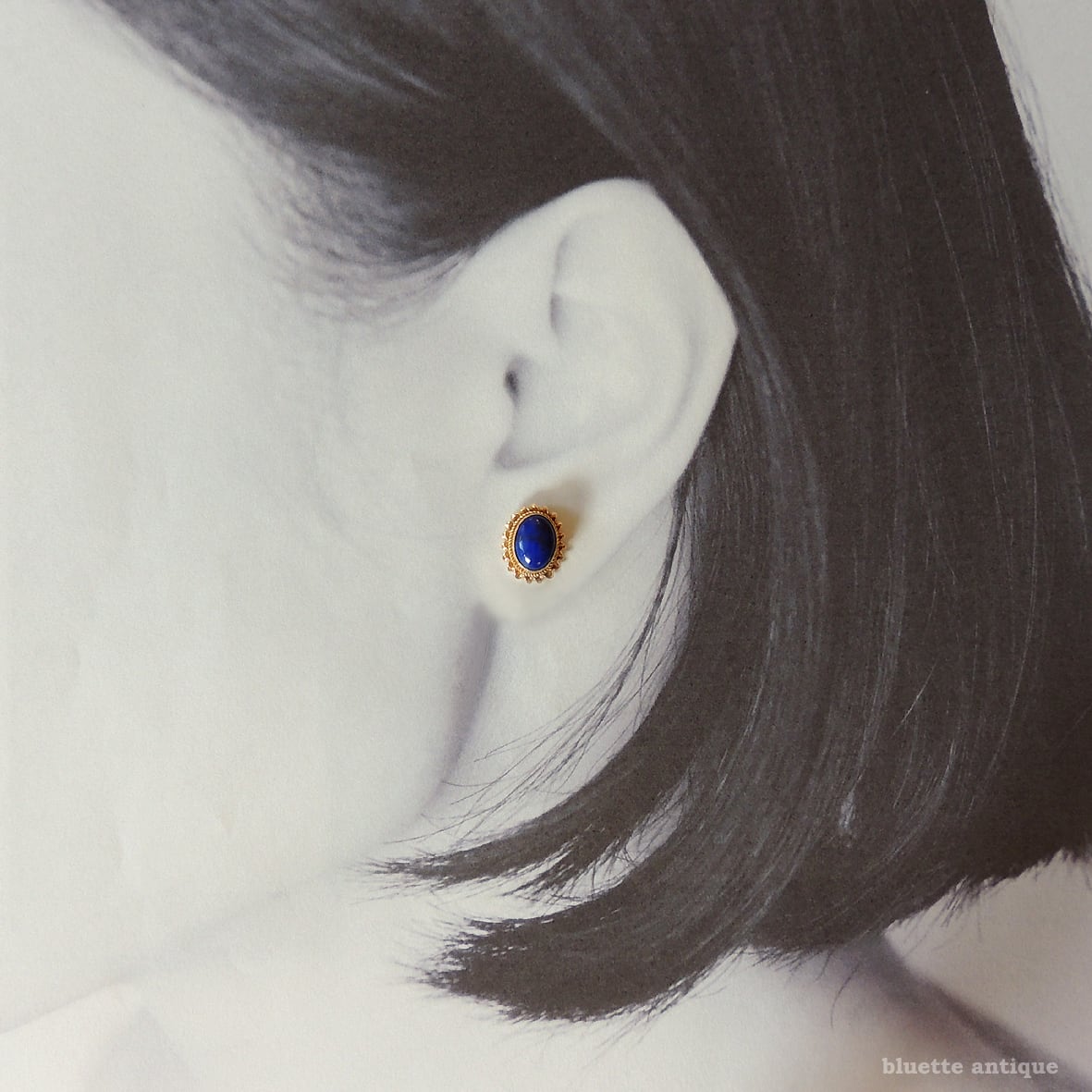 天然ラピスラズリ:約縦8.6mm×横6.3mm(枠込、片耳)