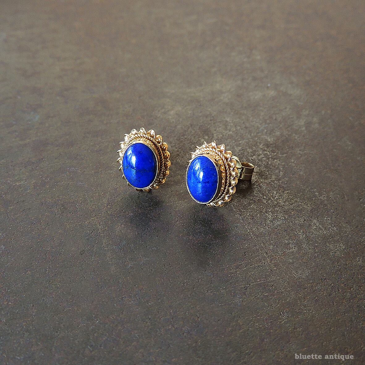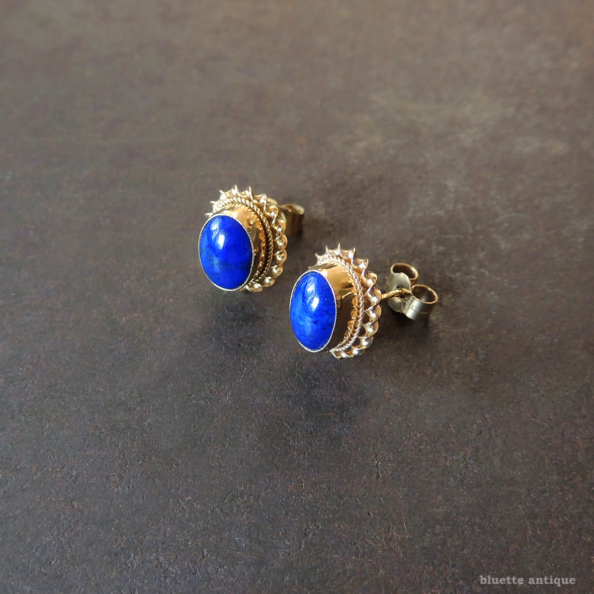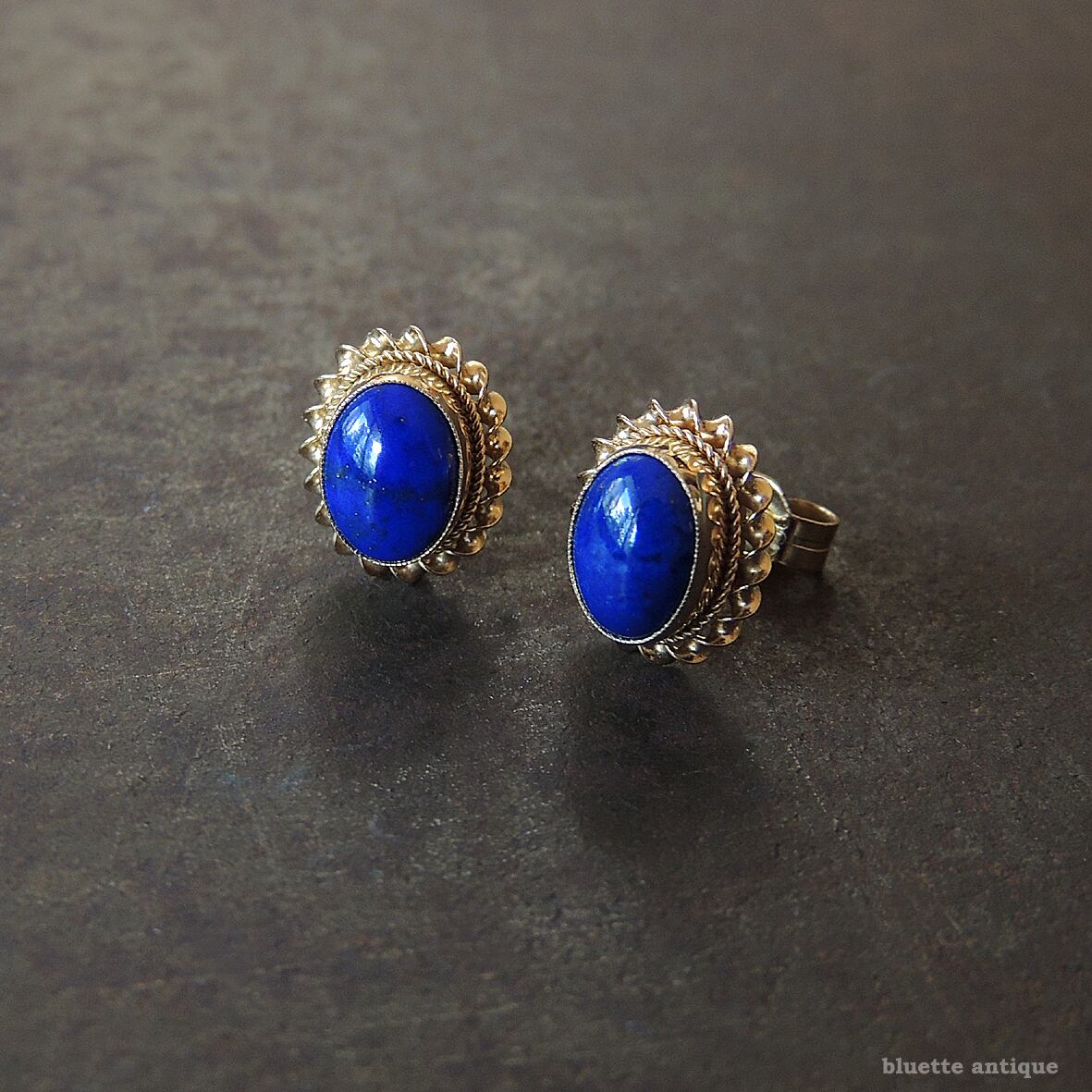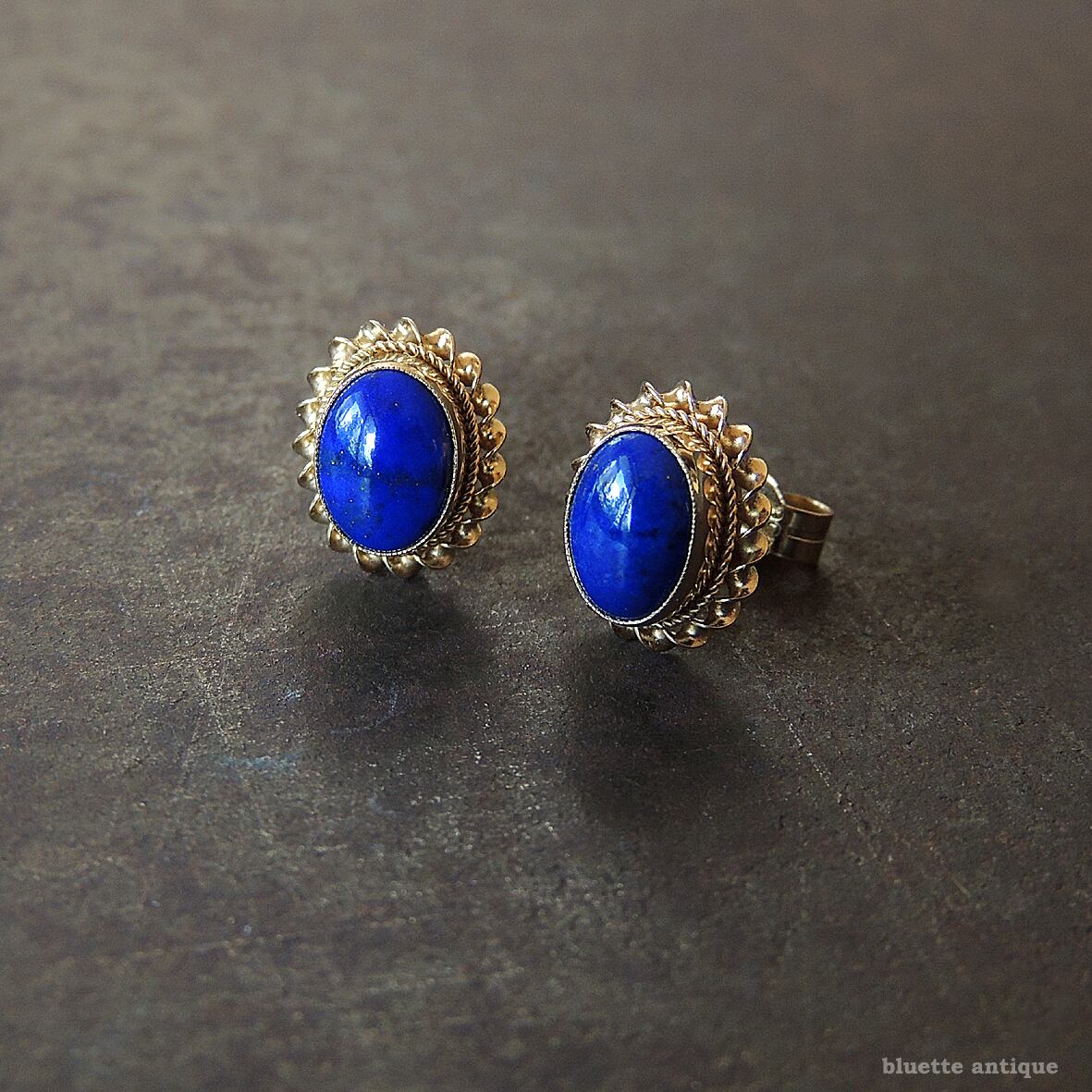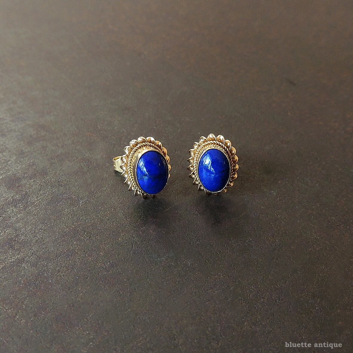 イギリスより、英国ヴィンテージ、天然ラピスラズリのスタッドピアスです。