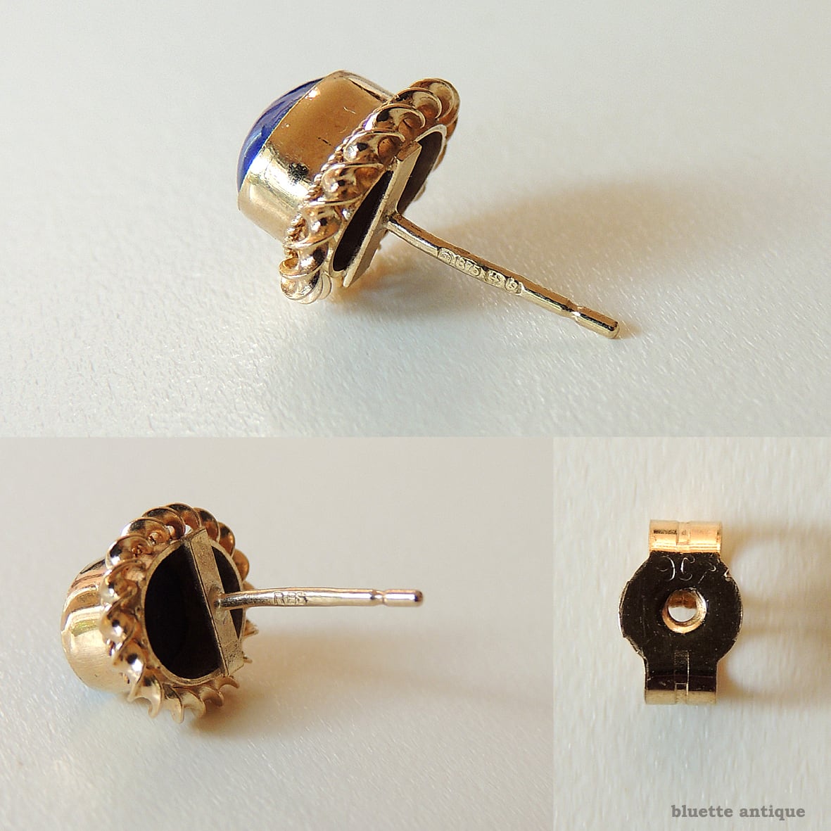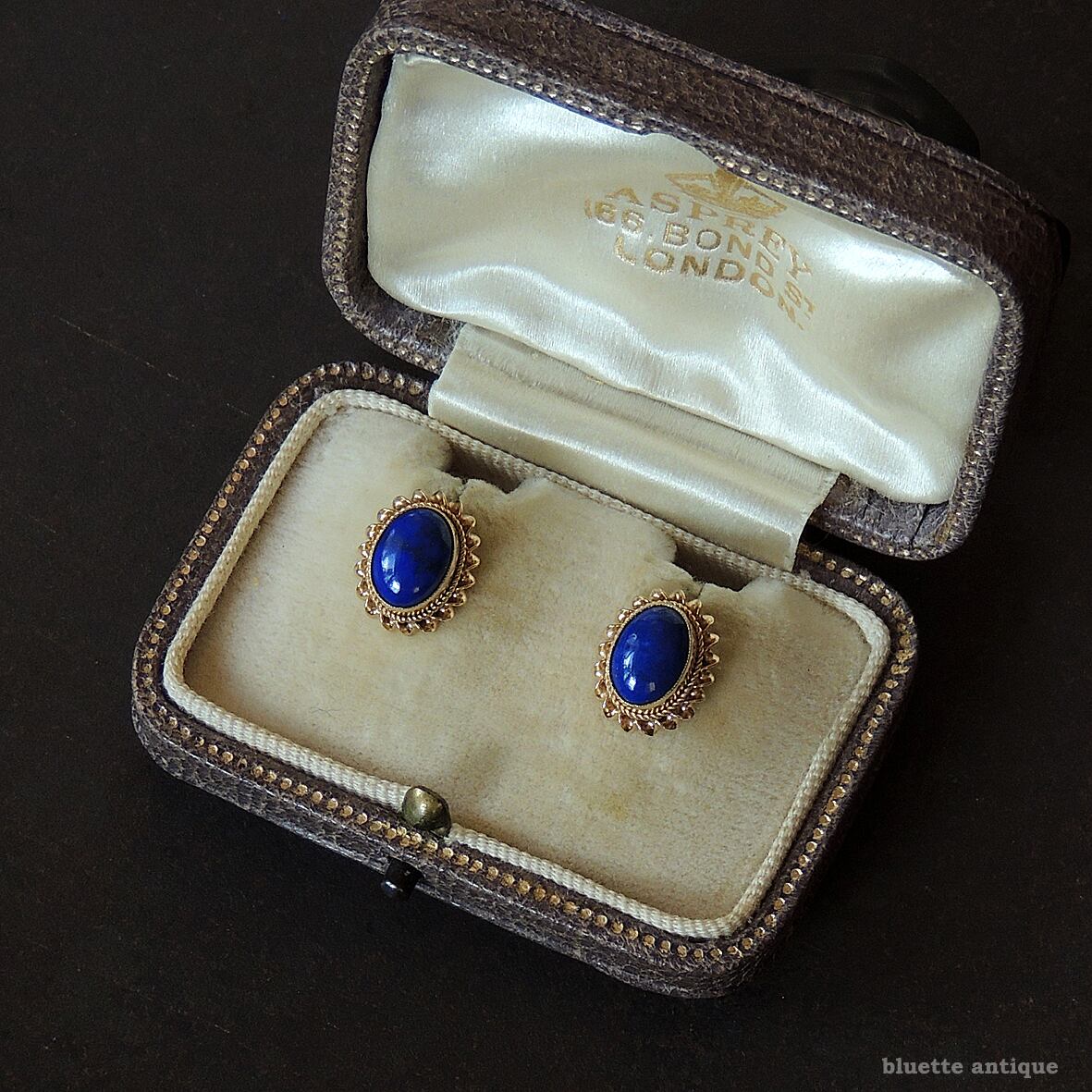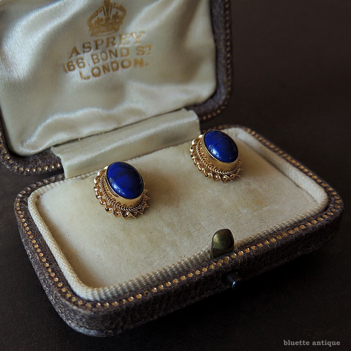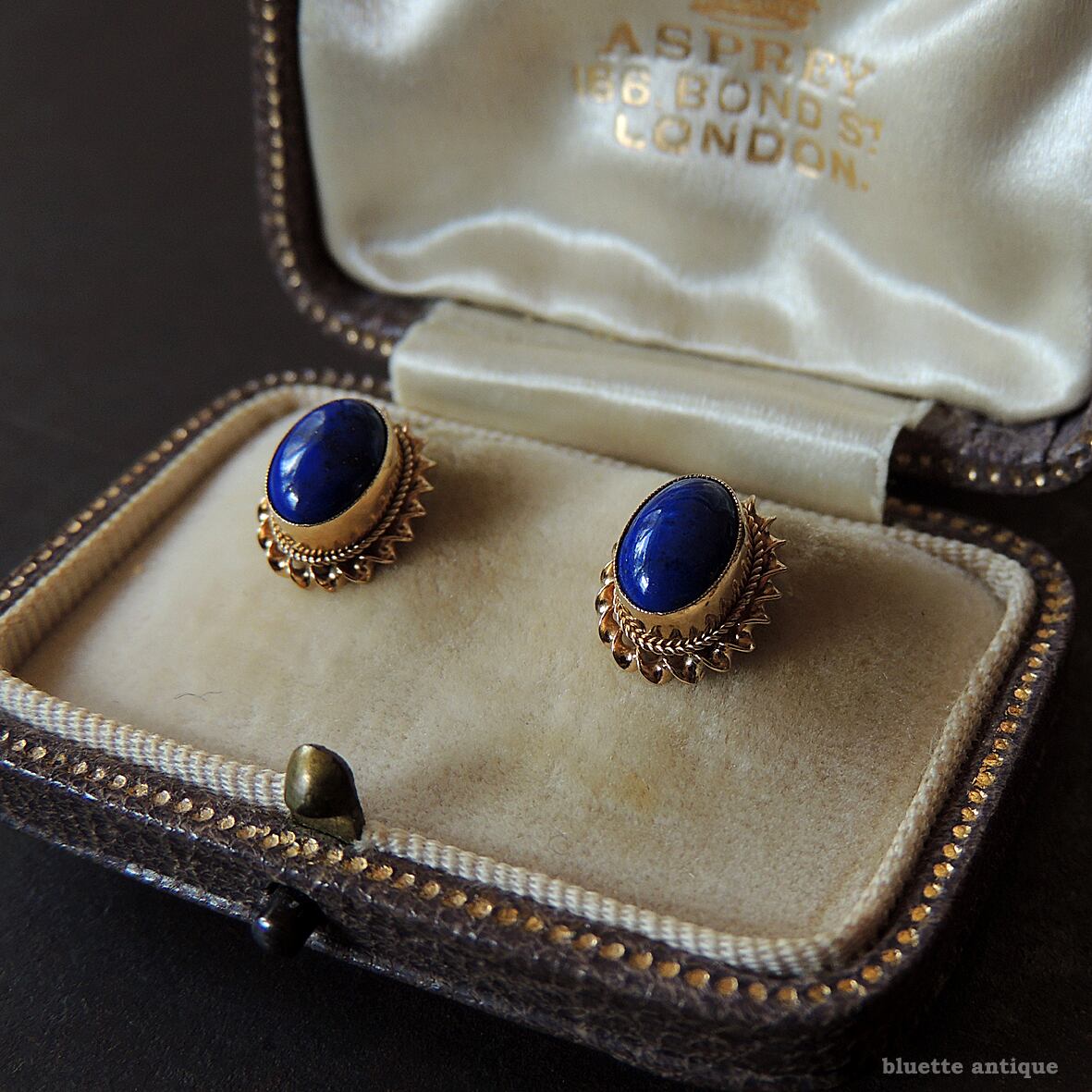 英国ヴィンテージジュエリー 9ctゴールド 天然ラピスラズリ ピアス(ソーティングメモ付)