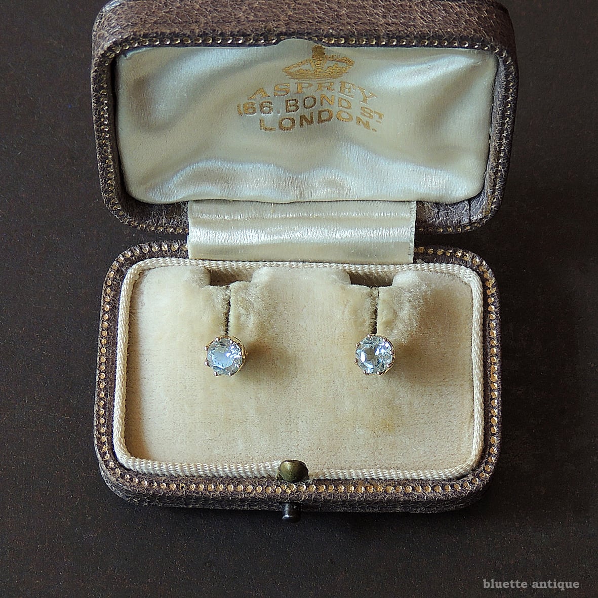 台は9金、両方の石座部分にゴールドの品位をあらわす「375」の刻印、キャッチ片方に「9ct」、もう片方に「375」の刻印が有ります。キャッチの形状は同一では有りません。