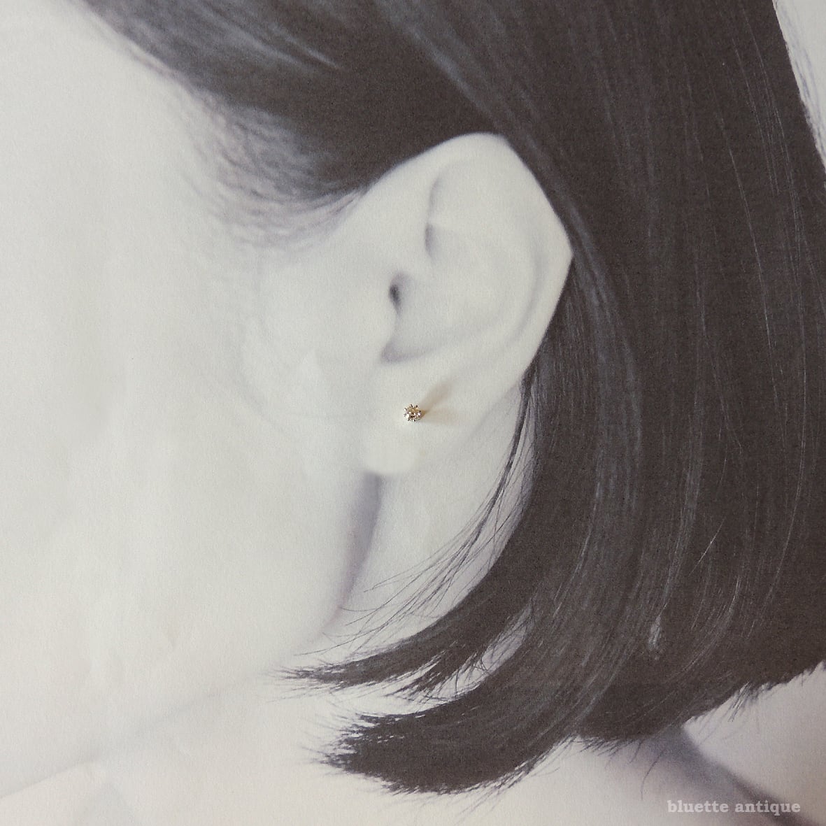 さり気なく着けられ、顔周りを明るくしてくれるアンティークダイヤモンドのピアス。
