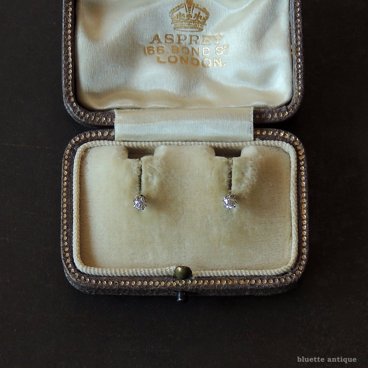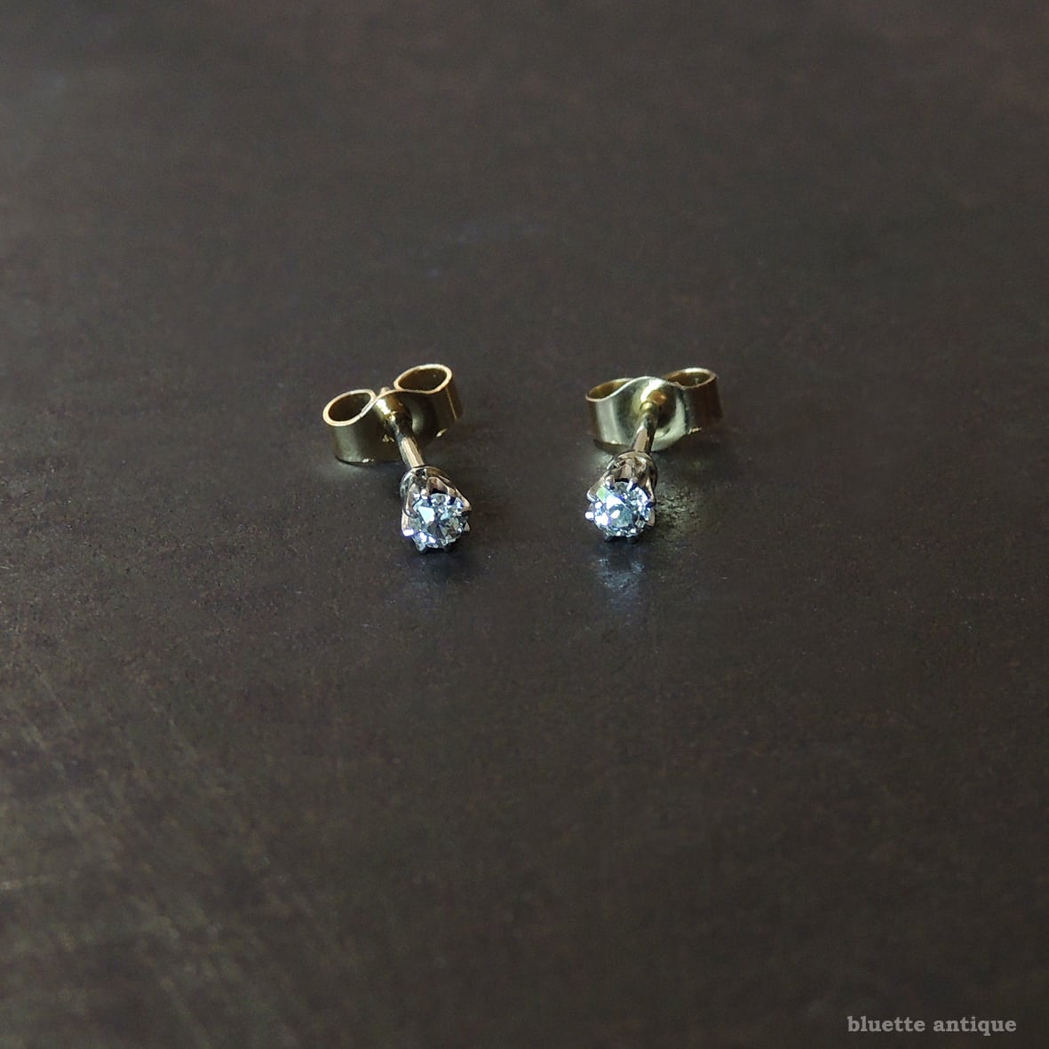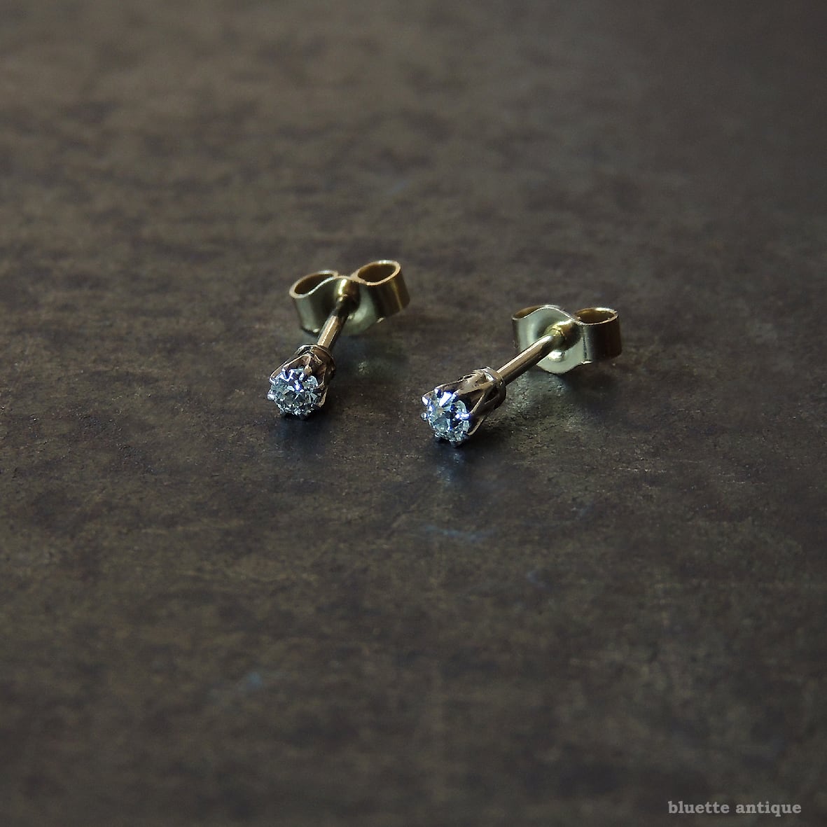 イギリスより、アンティーク、天然ダイヤモンドのスタッドピアスです。