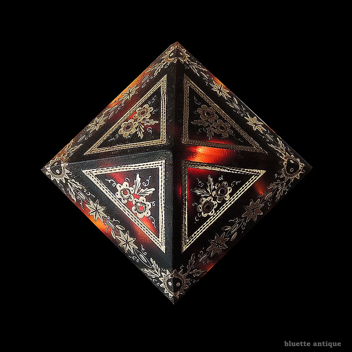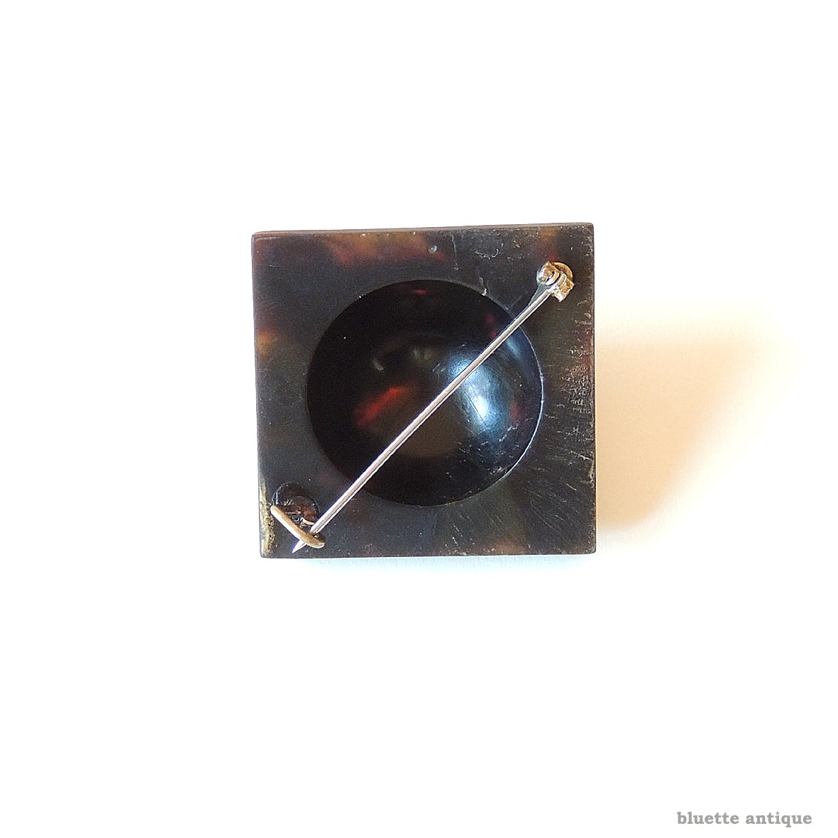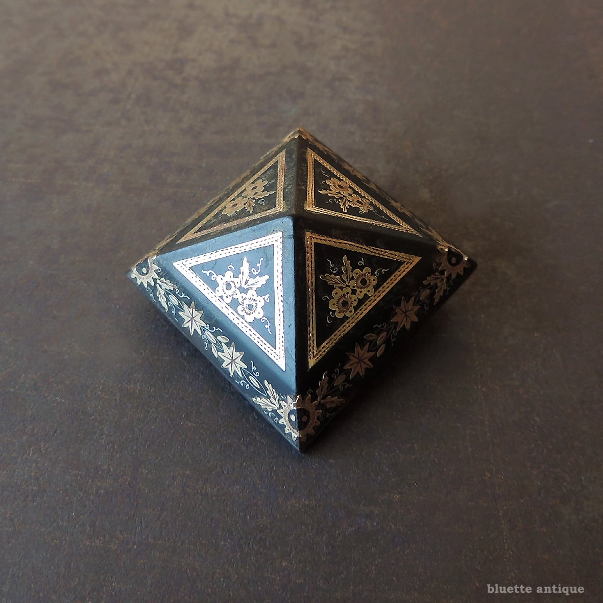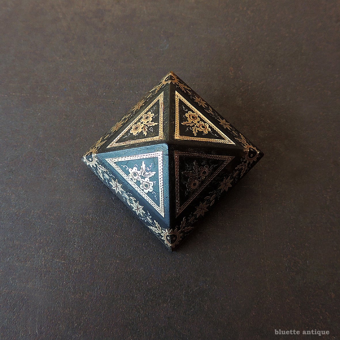 アンティーク、ヴィクトリアンのピクウェです。スクエア、ピラミッド型のべっ甲に、ゴールドとシルバーが象嵌された造形の大変美しいブローチ。