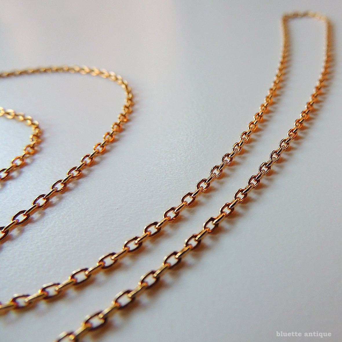 約52㎝と長め、40㎝台のチェーンが主流の中、長めのものは貴重です。胸元にペンダントを垂らし優雅に装いたい時、または単体でチェーンのしなやかな動きを堪能したい時等に最適なチェーンです。