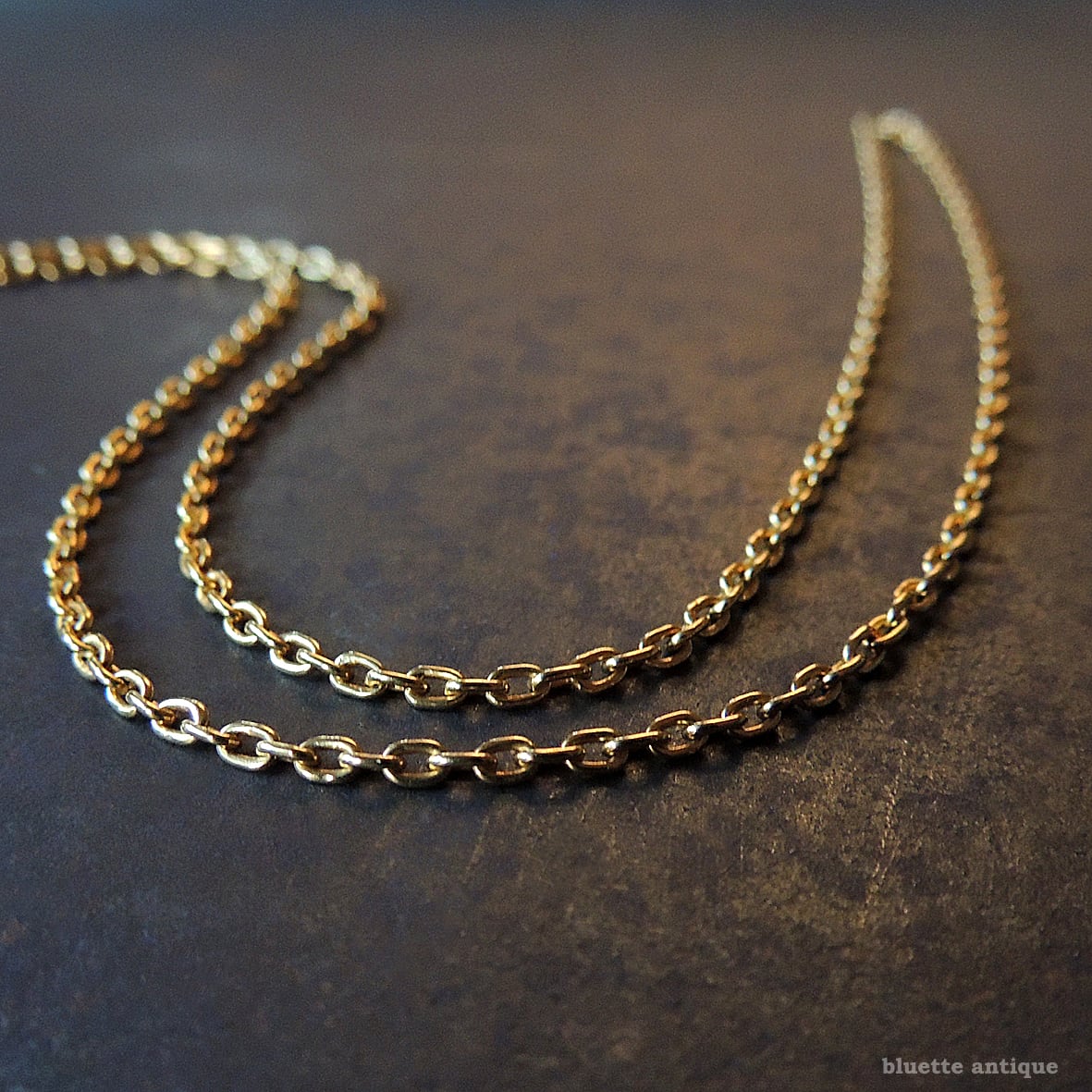 銅を多く含む9金特有の温かみのあるゴールド色は、ヴィクトリアン後期からエドワーディアン期の装いにも自然に馴染み、当時の雰囲気をそのまま楽しめるチェーンです。