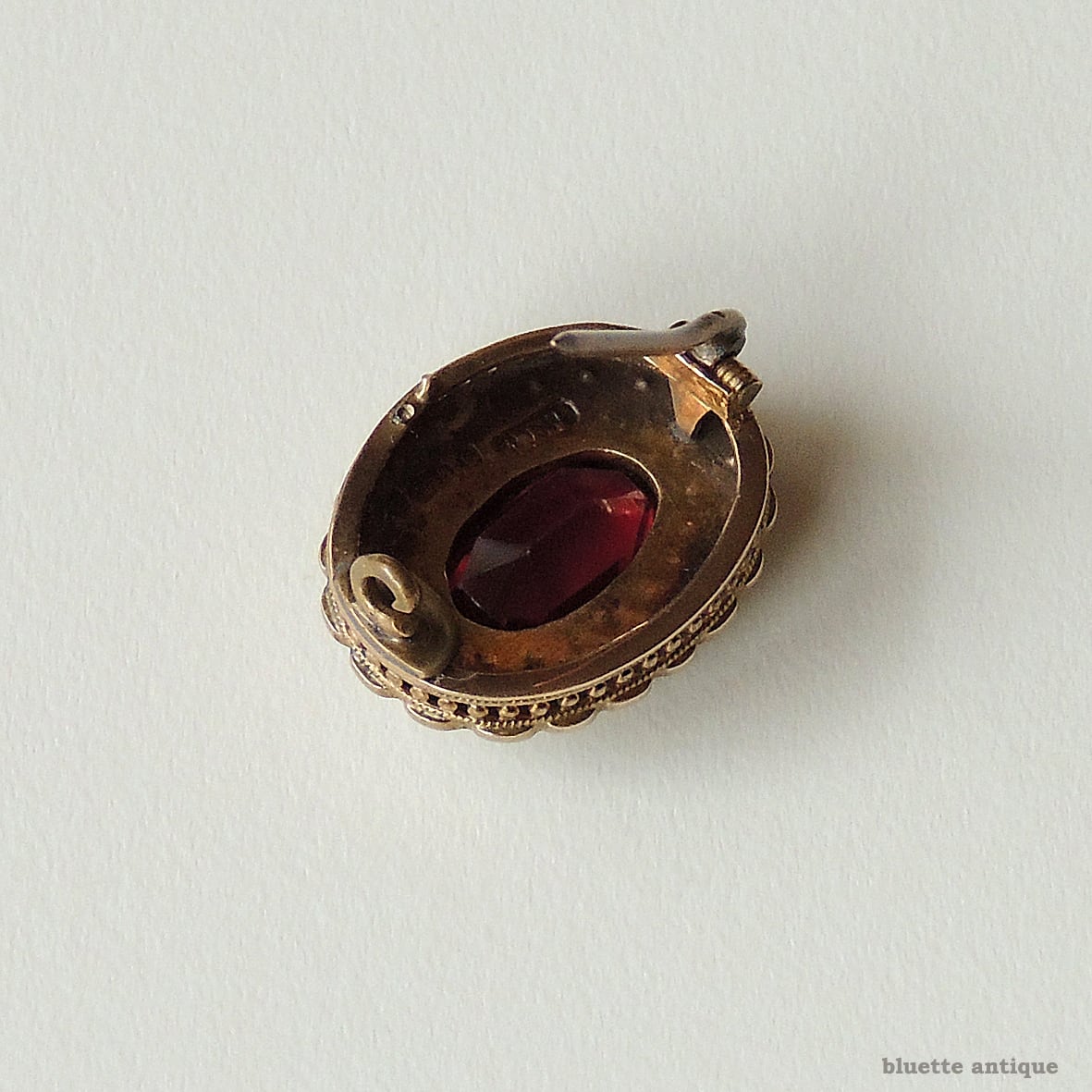 中央のロードライトガーネットは深く温かな赤、表面に細かな傷や小さな欠け等有ります。