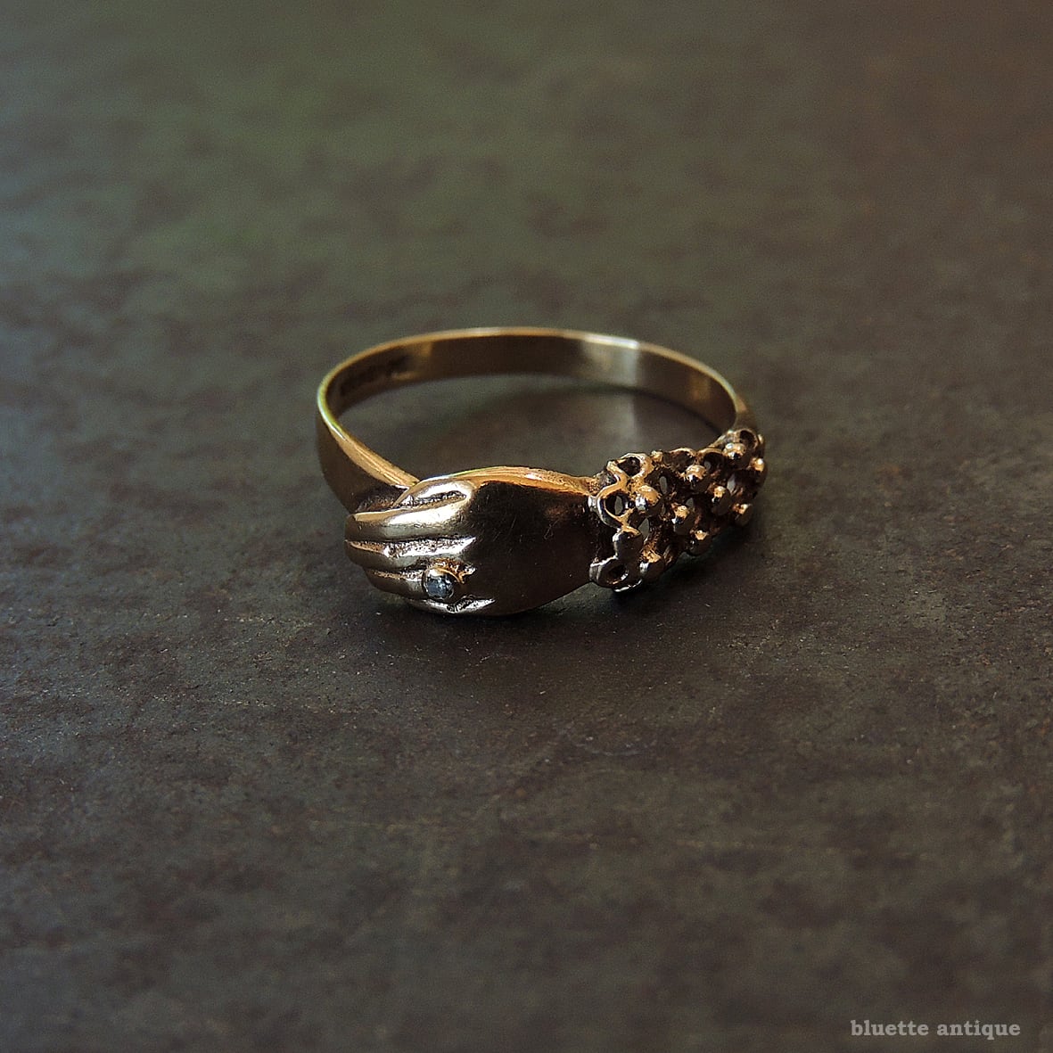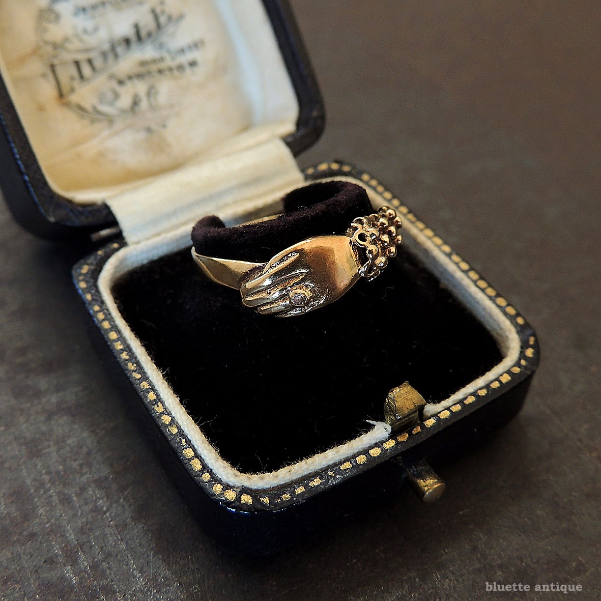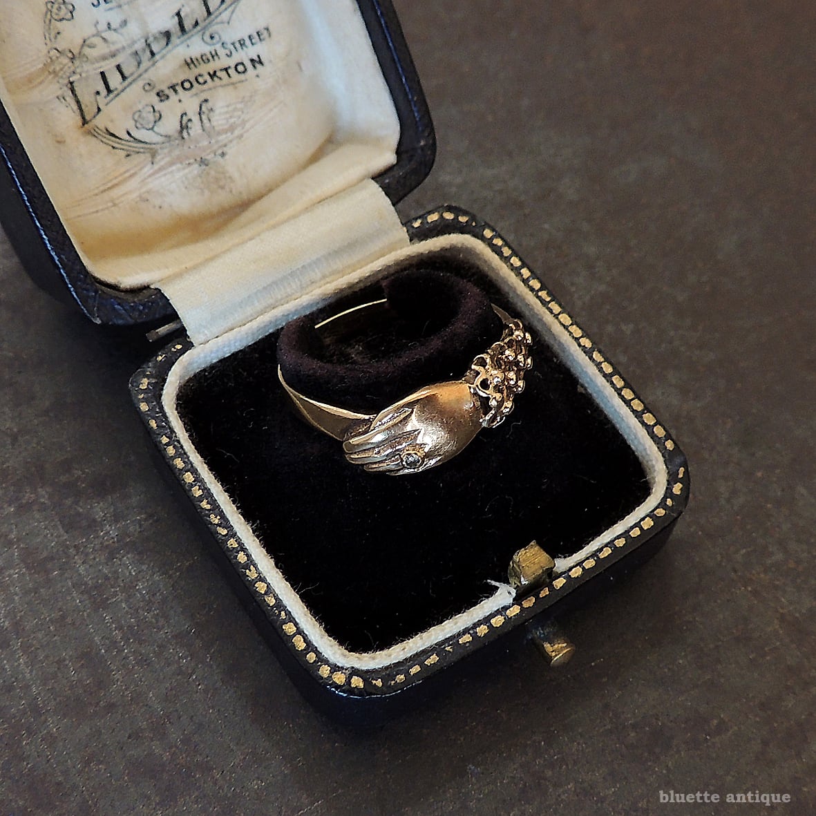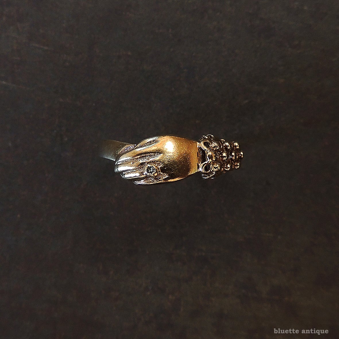ハンドモチーフは、アンティークおよびヴィンテージジュエリーにおいて「絆」「守護」「誓い」を象徴する伝統的な意匠です。
