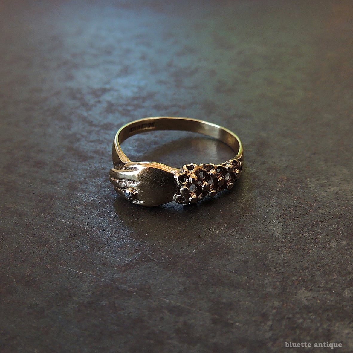 こちらは、英国ヴィンテージ、9金、天然ダイヤモンド、ハンドモチーフリングです。