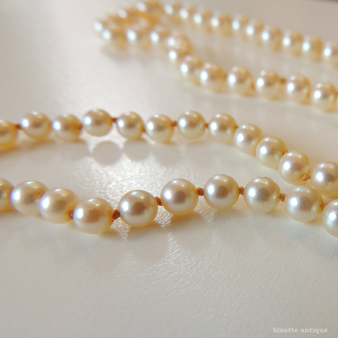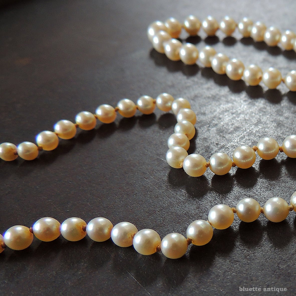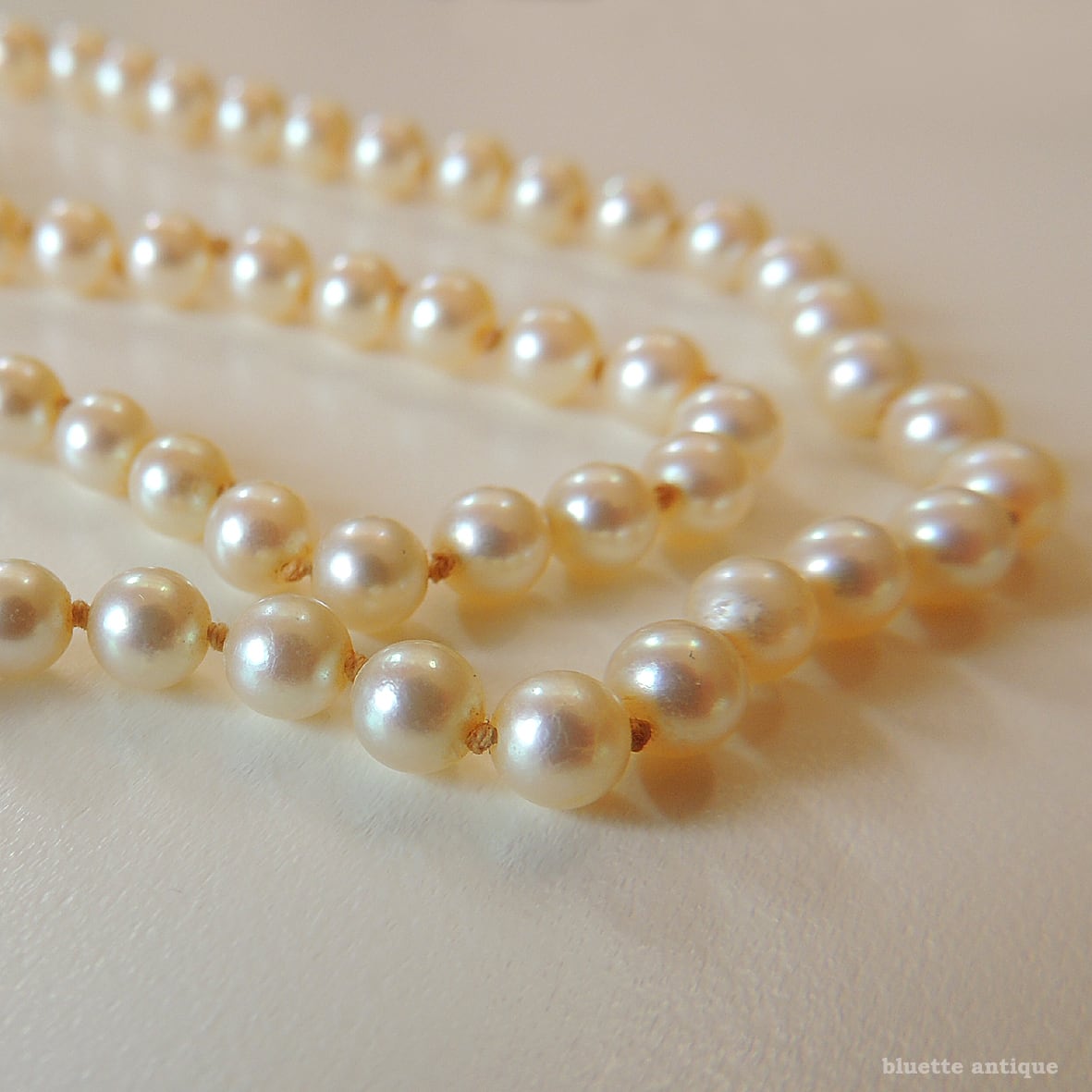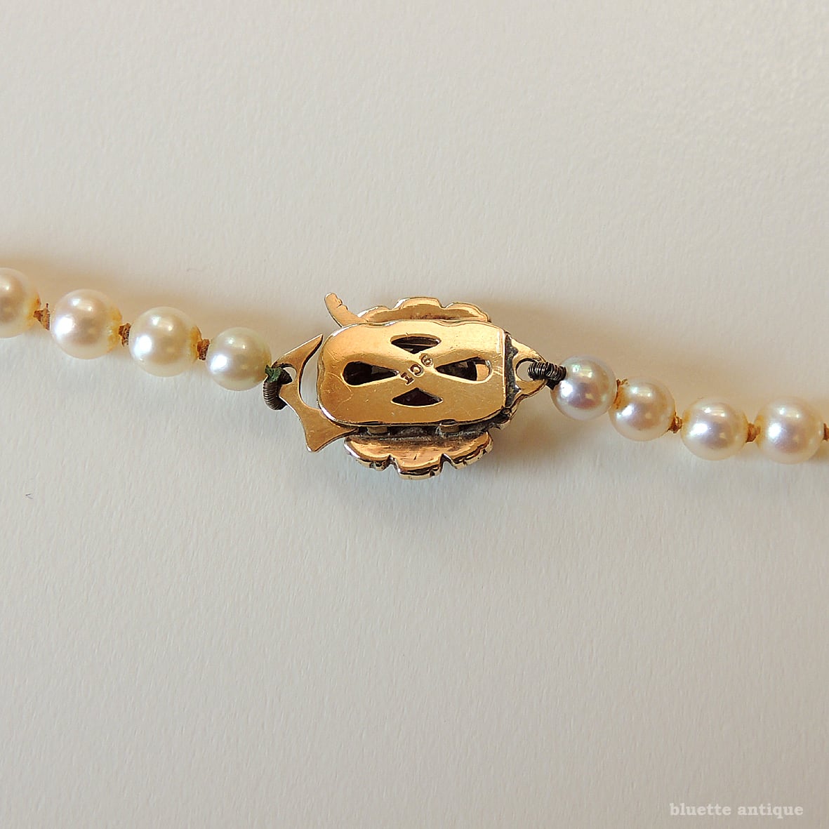 ルーペで確認すると、金具に僅かな黒ずみや真珠に擦れ・照りの薄くなっている所等有りますが、全体的にはしっとりとした艶めきの有る、とてもよいコンディションです。