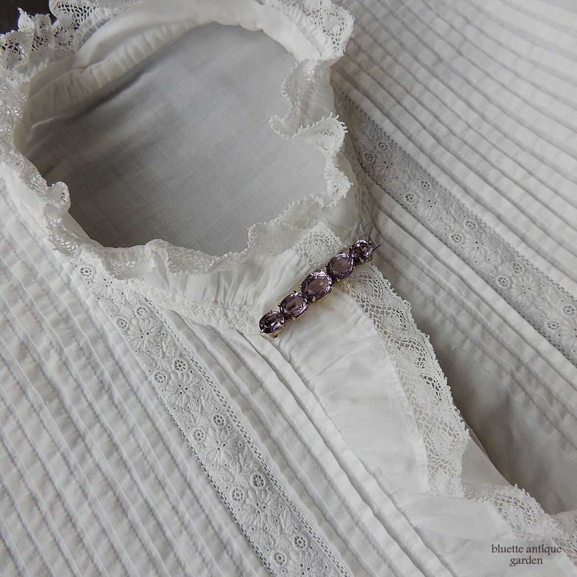 アンティークジュエリー 天然アメシスト 5連バーブローチ (ソーティングメモ付)