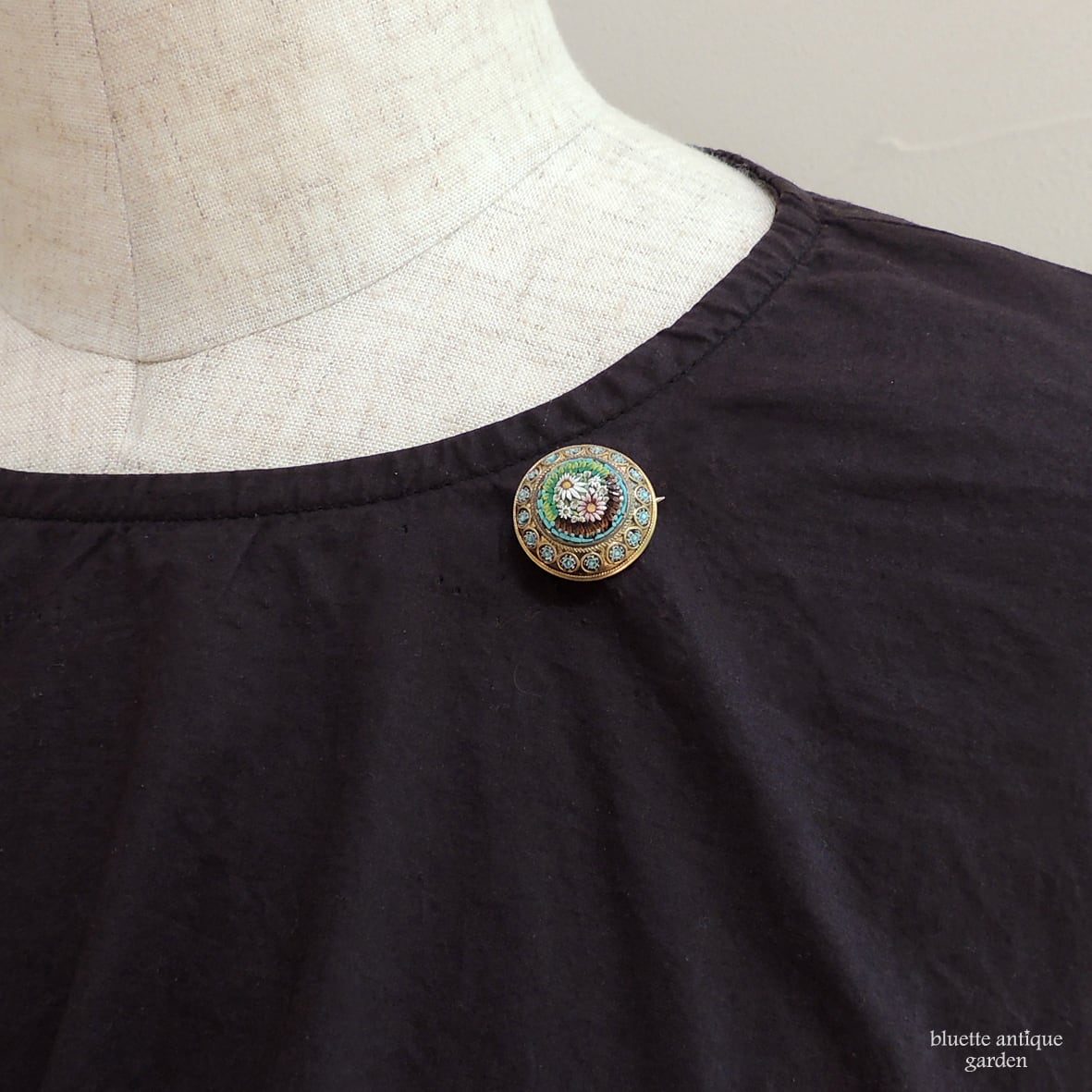 小さなブーケを飾る様な、マイクロモザイクのブローチ。襟元や小物のワンポイントにおすすめです。