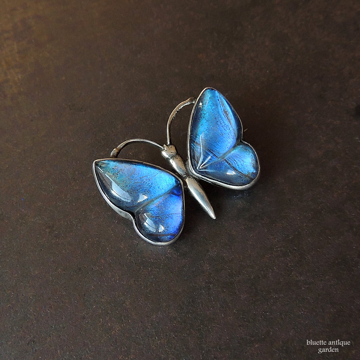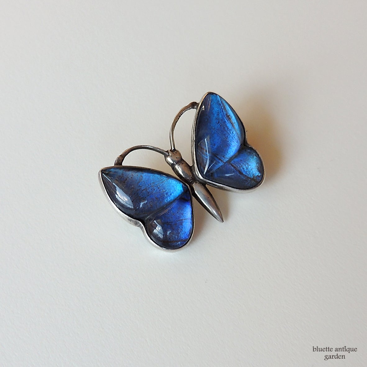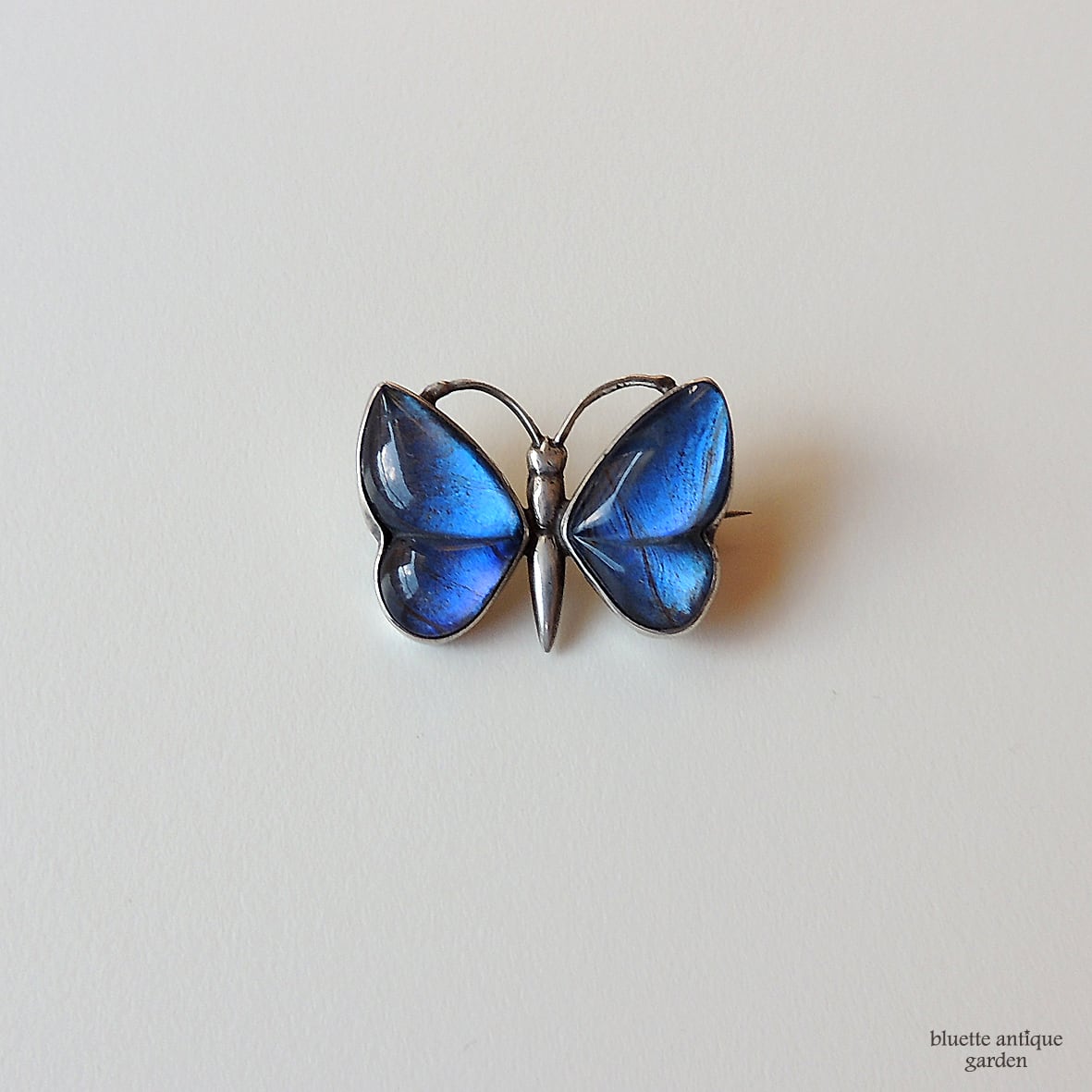 イギリスより、アンティーク、スターリングシルバー、モルフォ蝶のバタフライブローチです。