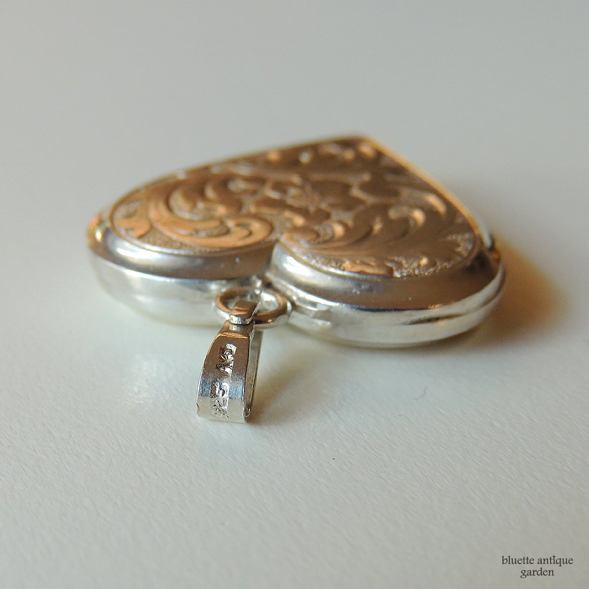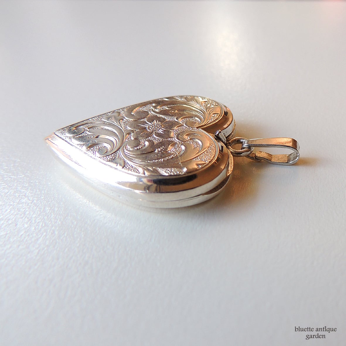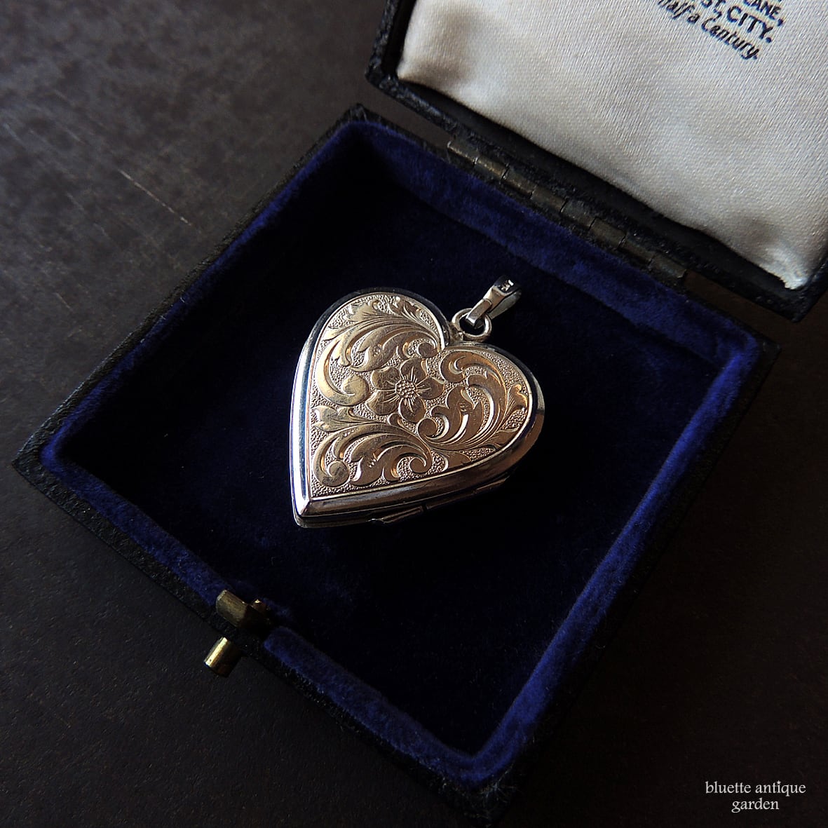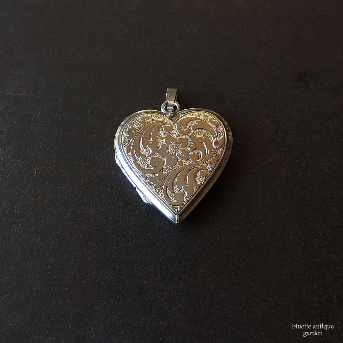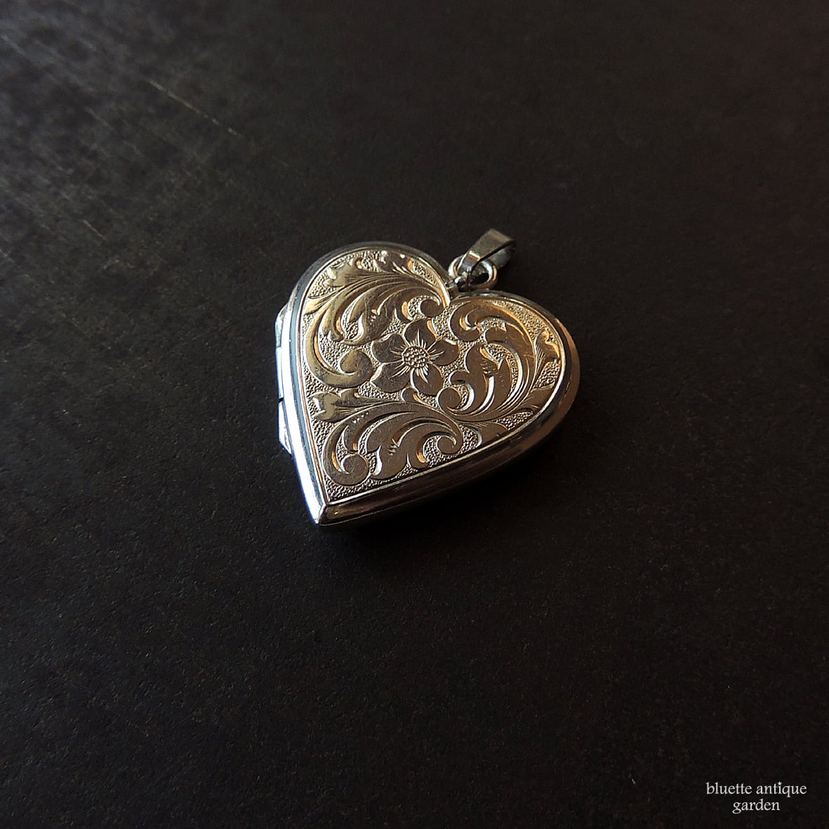 ヴィンテージジュエリー シルバー925 ハートロケット【忘れな草・アカンサス】