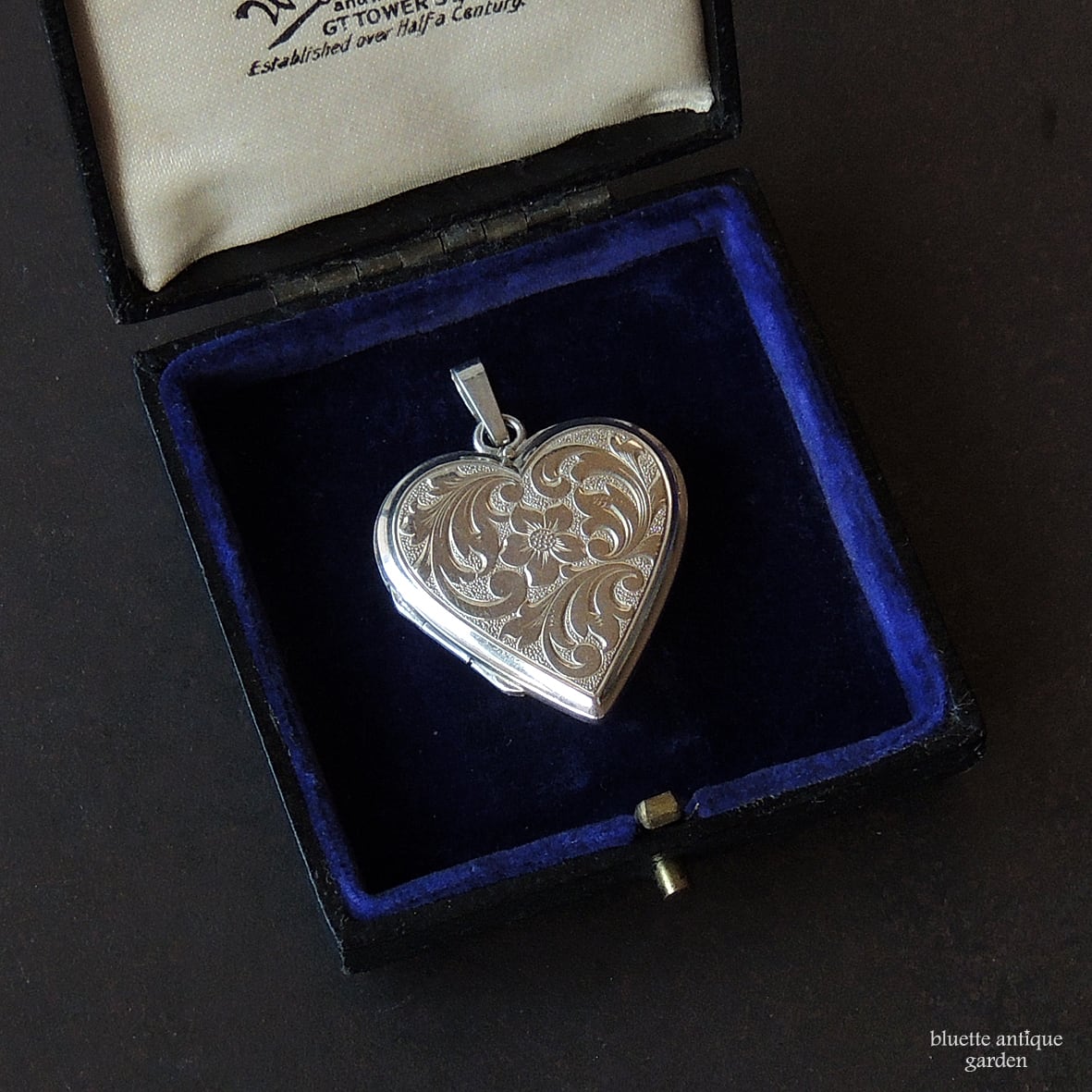 イギリスより、ヴィンテージ、シルバー925、忘れな草、アカンサス、ハートのロケットです(チェーンは付属しません)。バチカン部分に「925 A*D」の刻印が有ります。