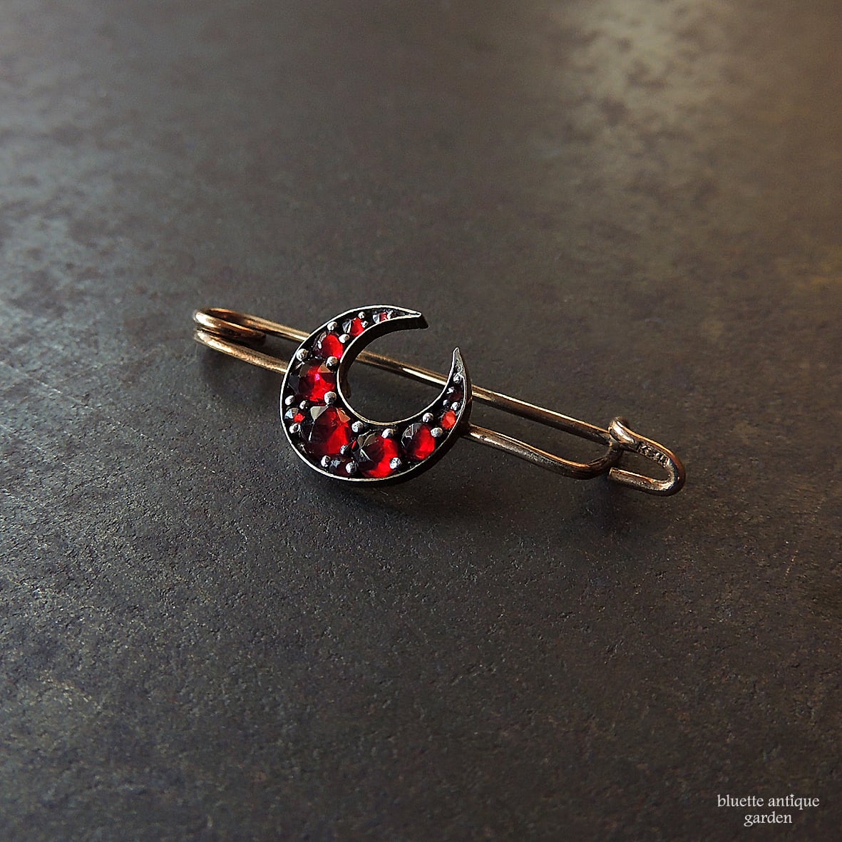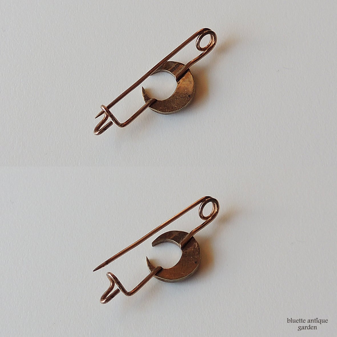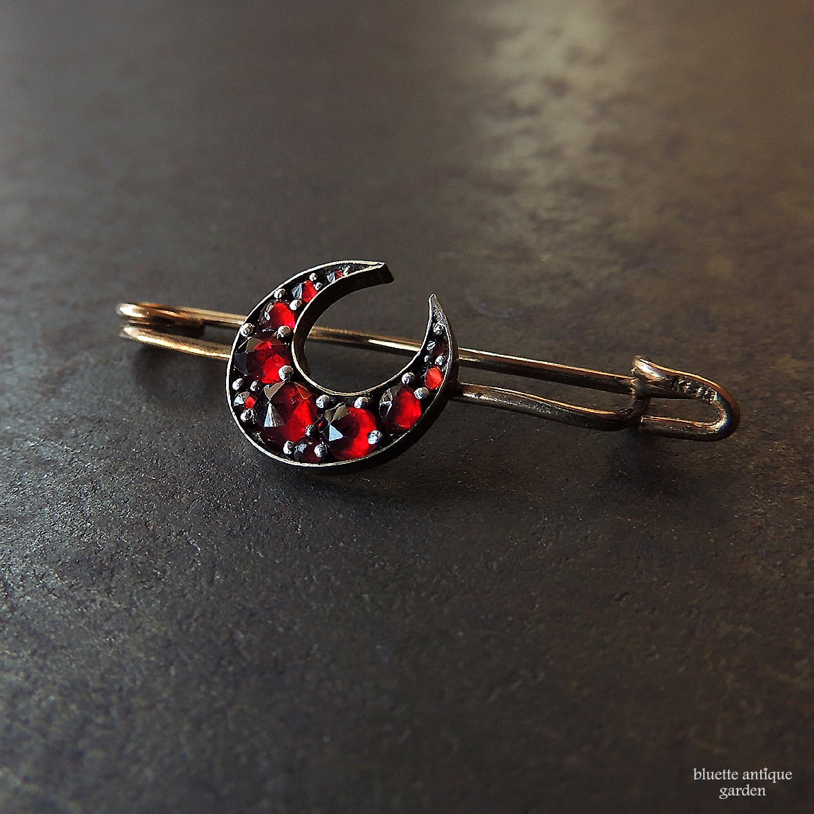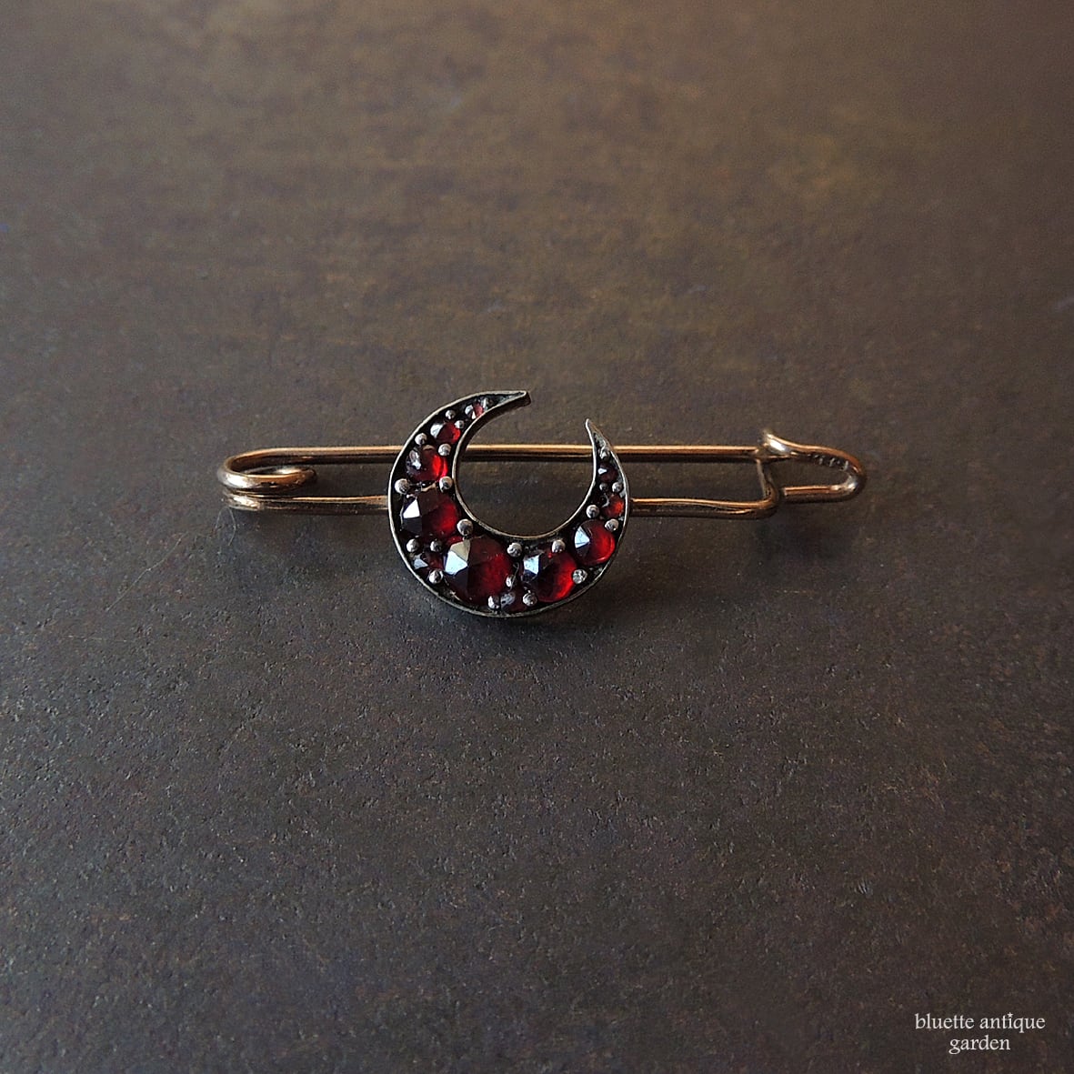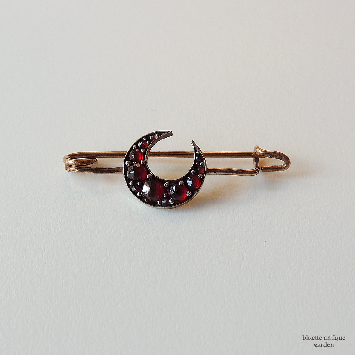 アンティークジュエリー 天然パイロープガーネット タイニークレセント(三日月) ピンブローチ(ソーティングメモ付)