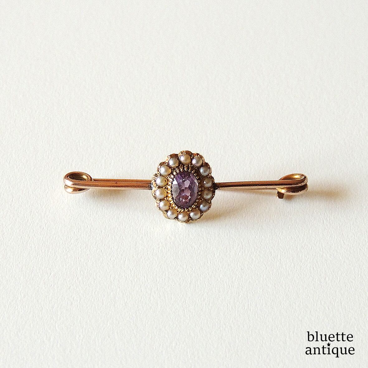 アンティークジュエリー 天然アメシスト 真珠 ブローチ (ソーティングメモ付)