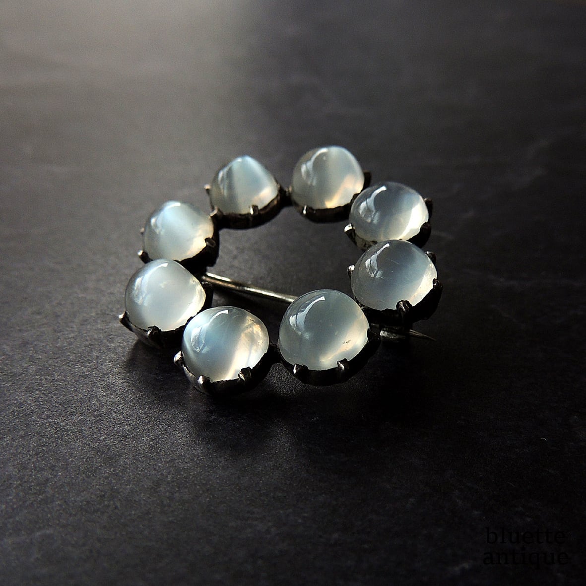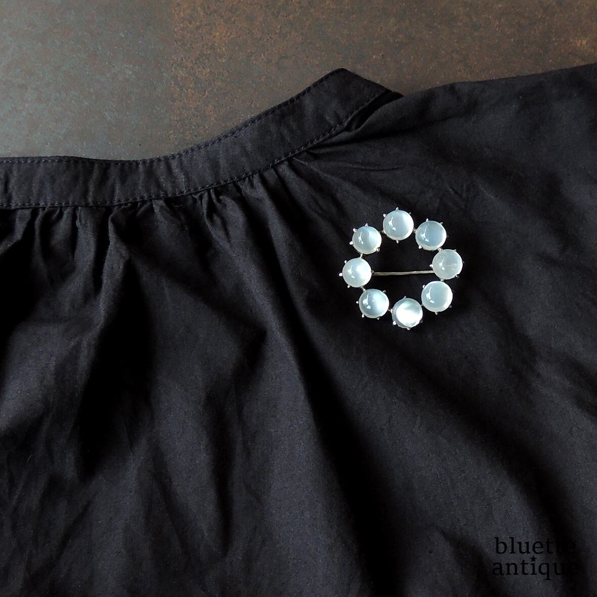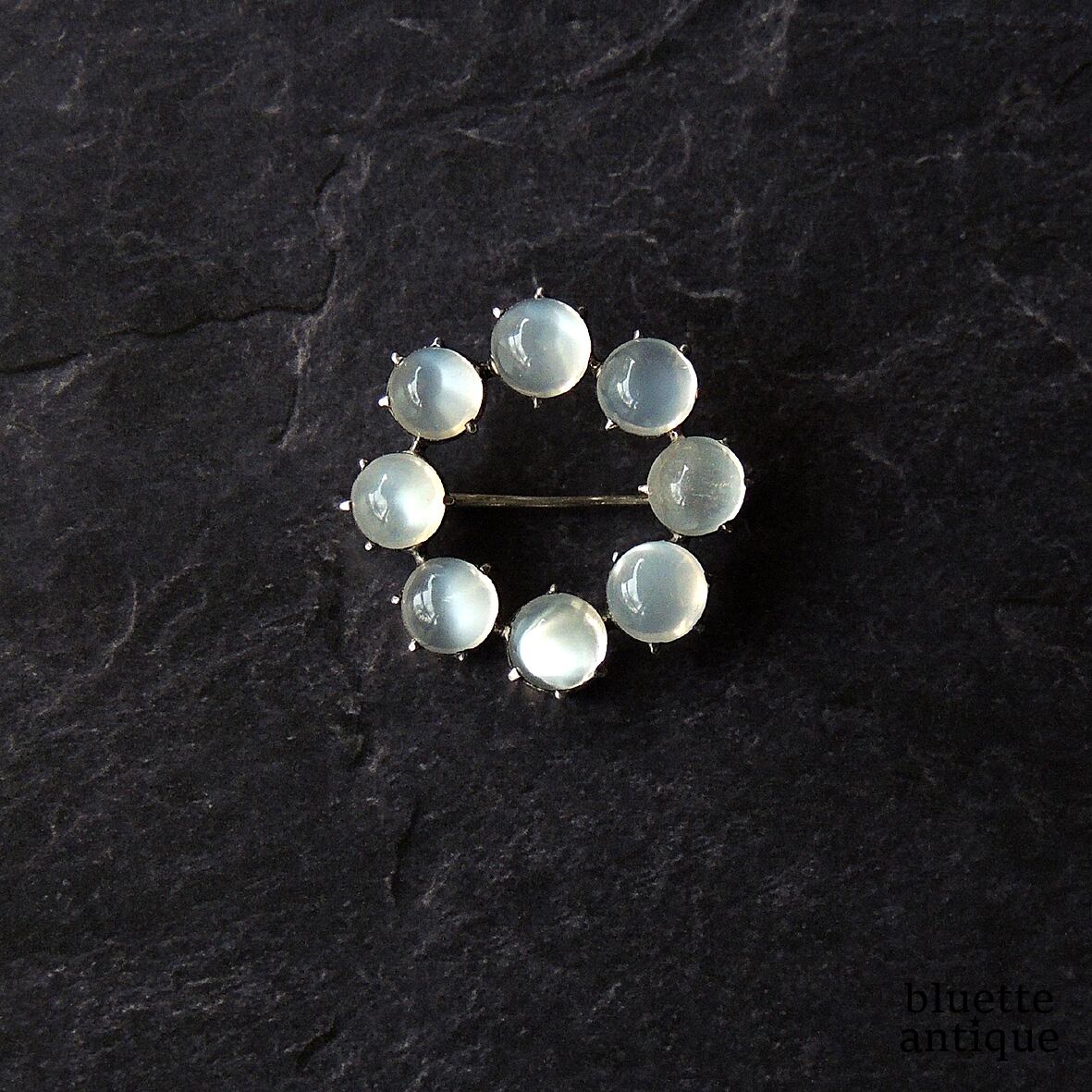 アンティークジュエリー 天然ムーンストーン サークルブローチ (ソーティングメモ付)