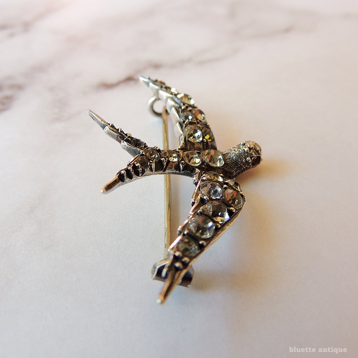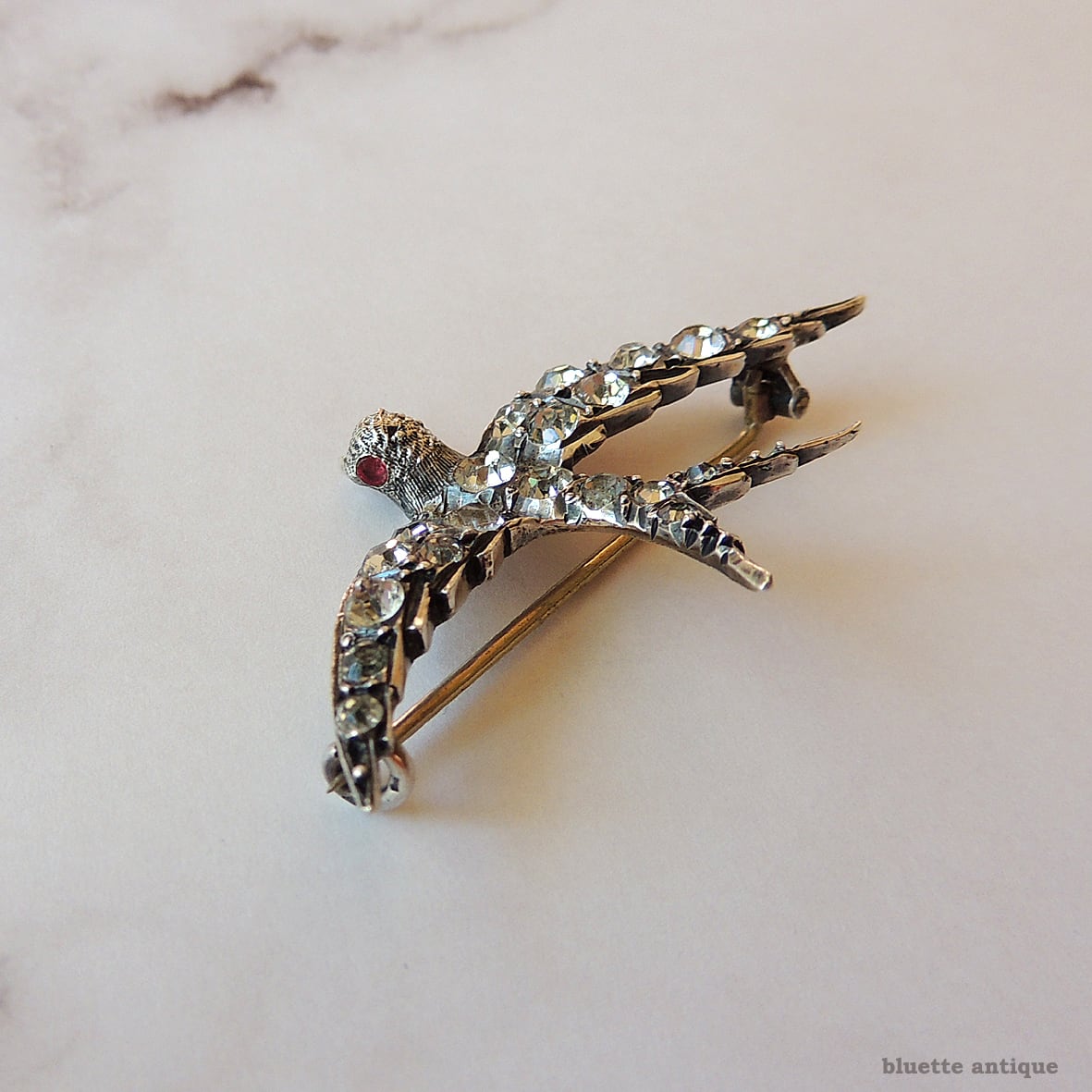フランスアンティークジュエリー シルバー800 レッドアイ ツバメブローチ