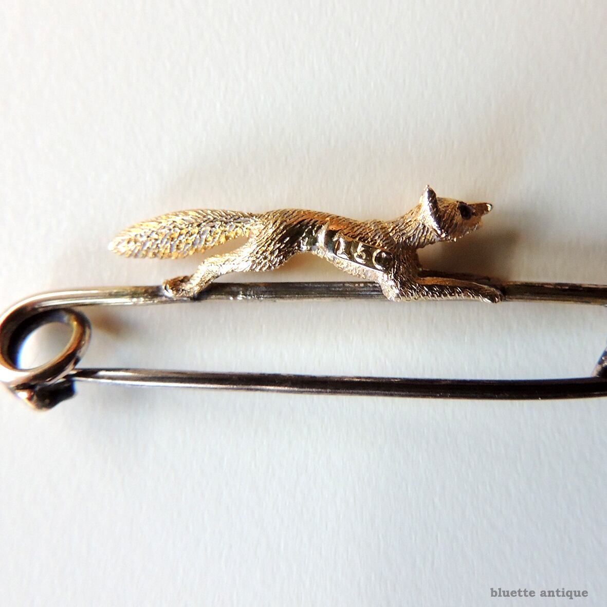 ヴィクトリア朝~エドワード朝に、紳士のスポーツとして人気の有った、フォックスハンティング。狩猟の成功を祈ってキツネの形をしたジュエリーが流行しました。こちらはとても小さく繊細なつくりですが、ふさふさの尻尾やあばら等も表現されており可愛いです。