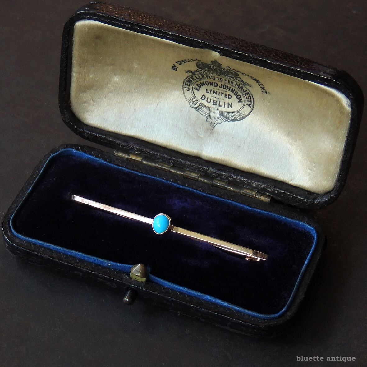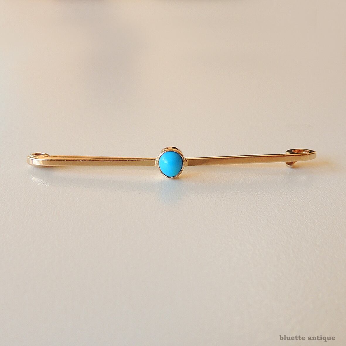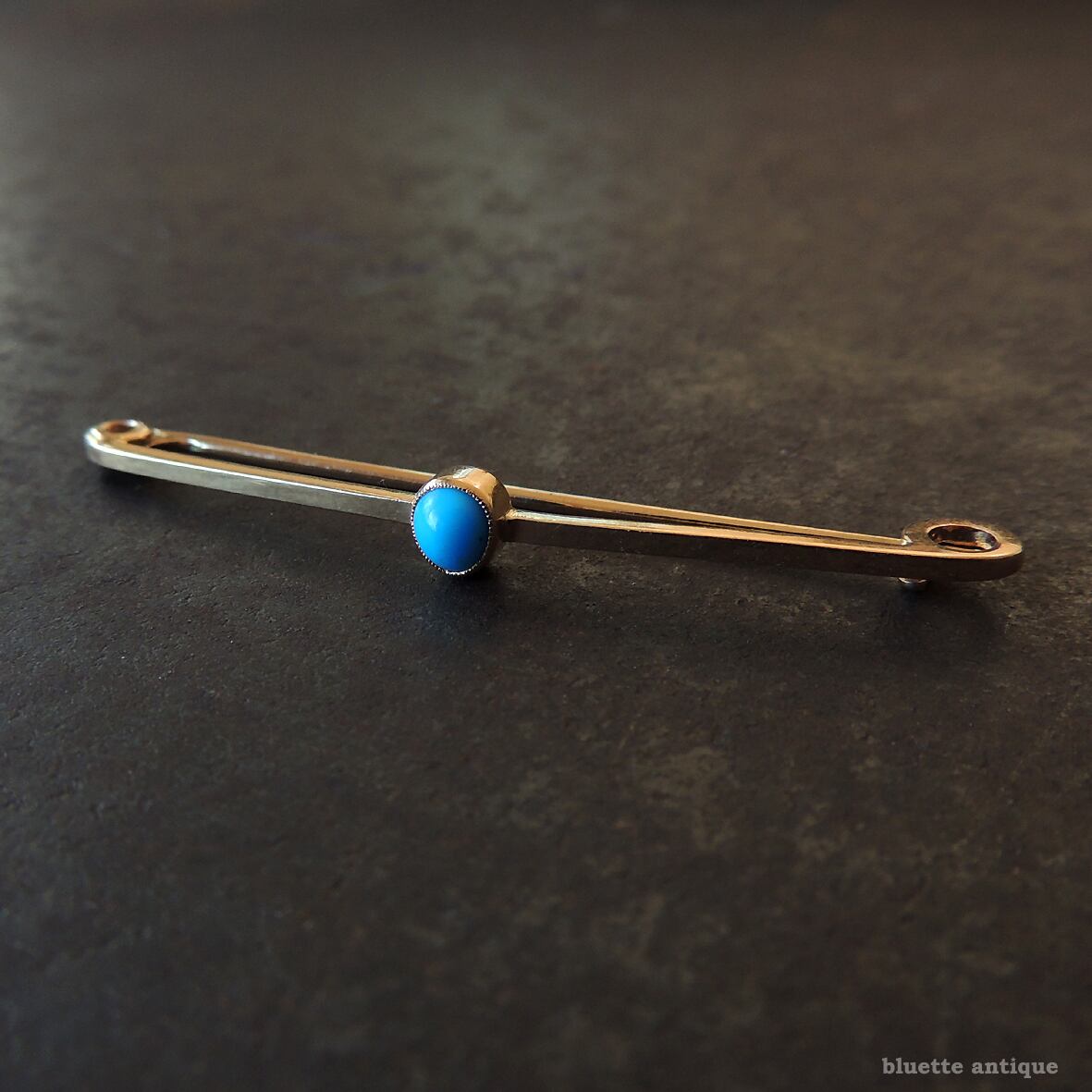 英国アンティークジュエリー 15ctゴールド 天然ターコイズ バーピンブローチ (ソーティングメモ付)