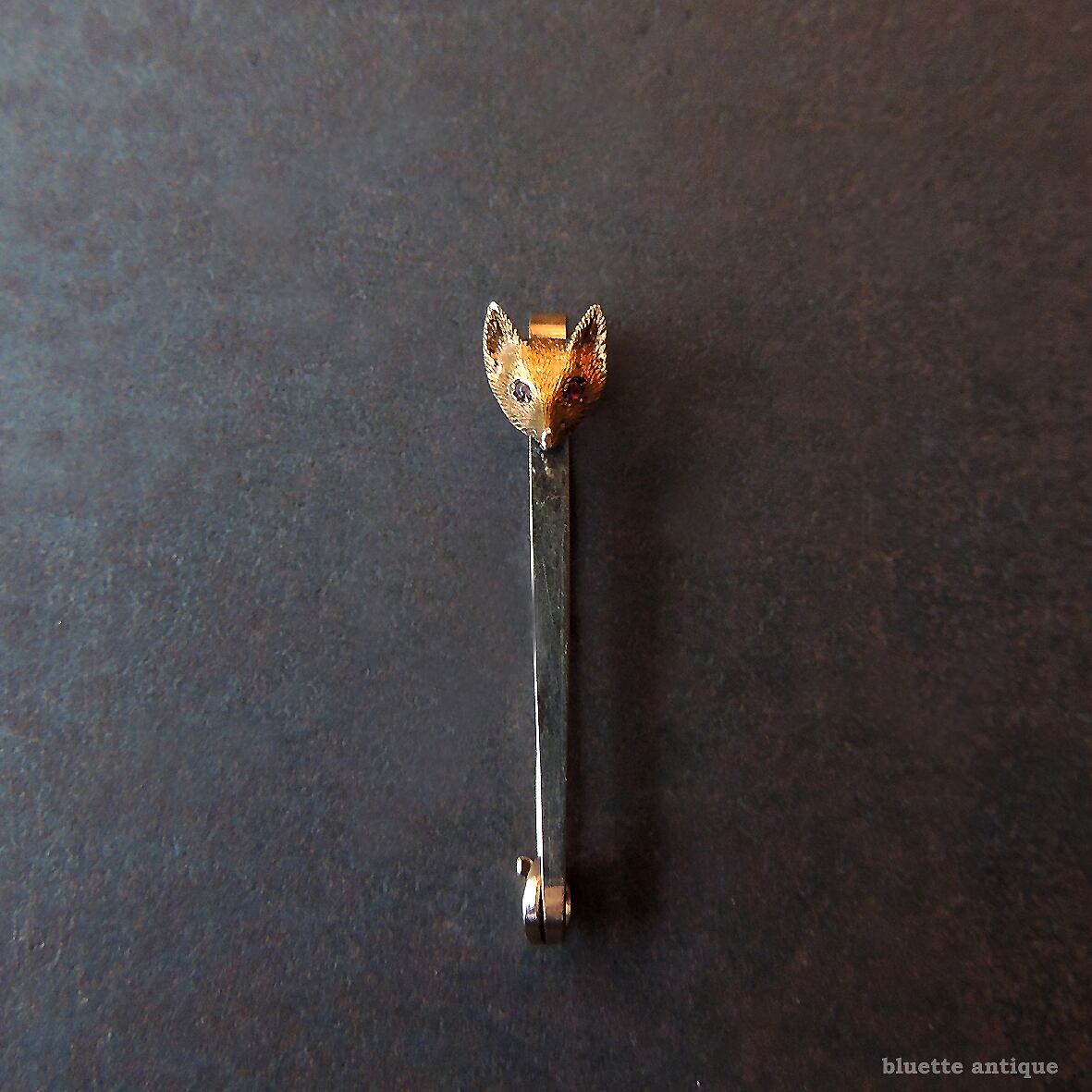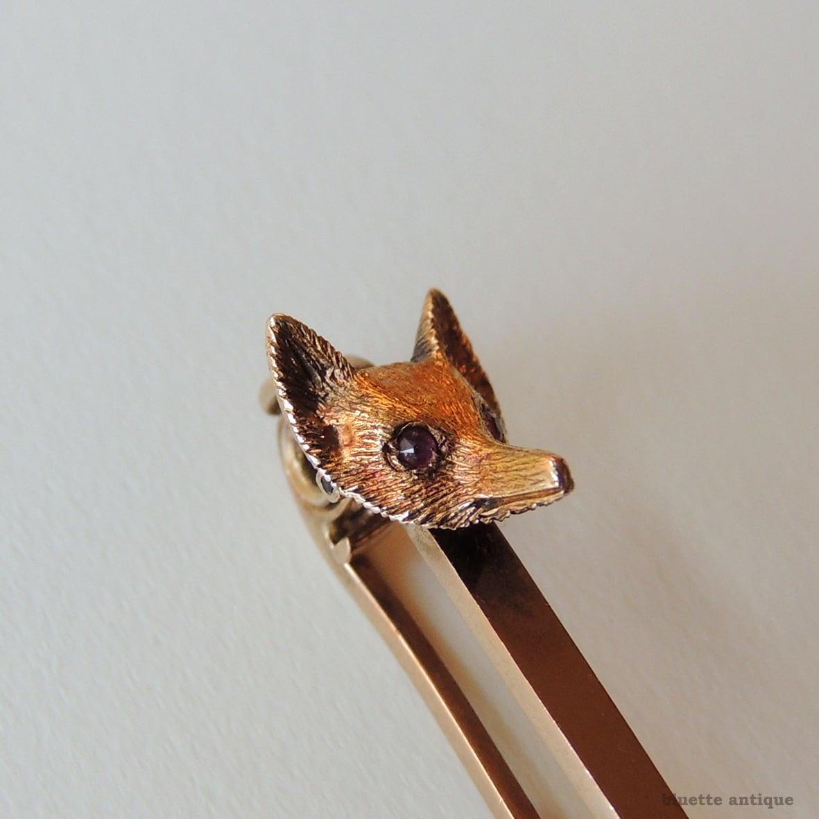 アンティークジュエリー 9ctゴールド 天然ルビーアイ フォックスヘッド バーブローチ(鑑別書付)