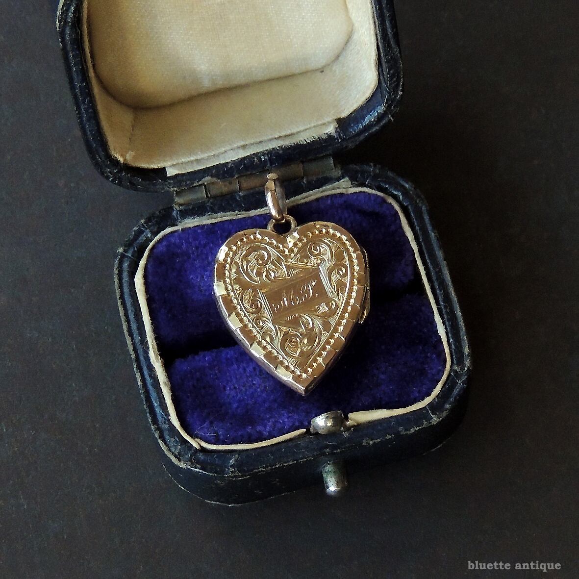 全体的に細かな擦れ、引っ掻き傷、僅かなへこみ等有りますが、手彫りの文字も美しい、愛らしいロケットです。大切な写真等を仕舞い、身に着ける事が出来ます。