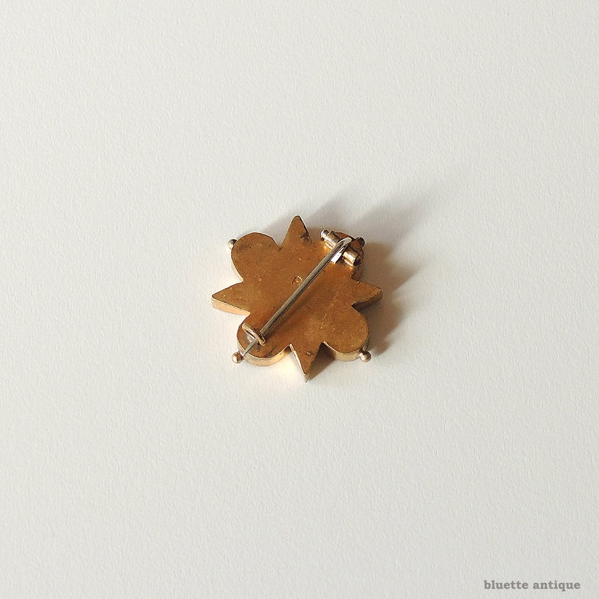 台はゴールドカラーのメタルで、シックな配色が素敵な、コンディションの良いブローチです。