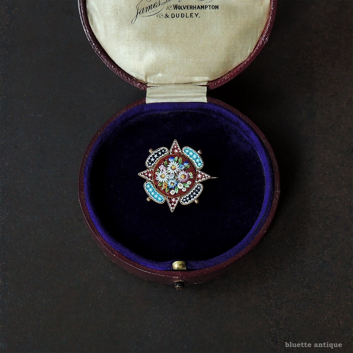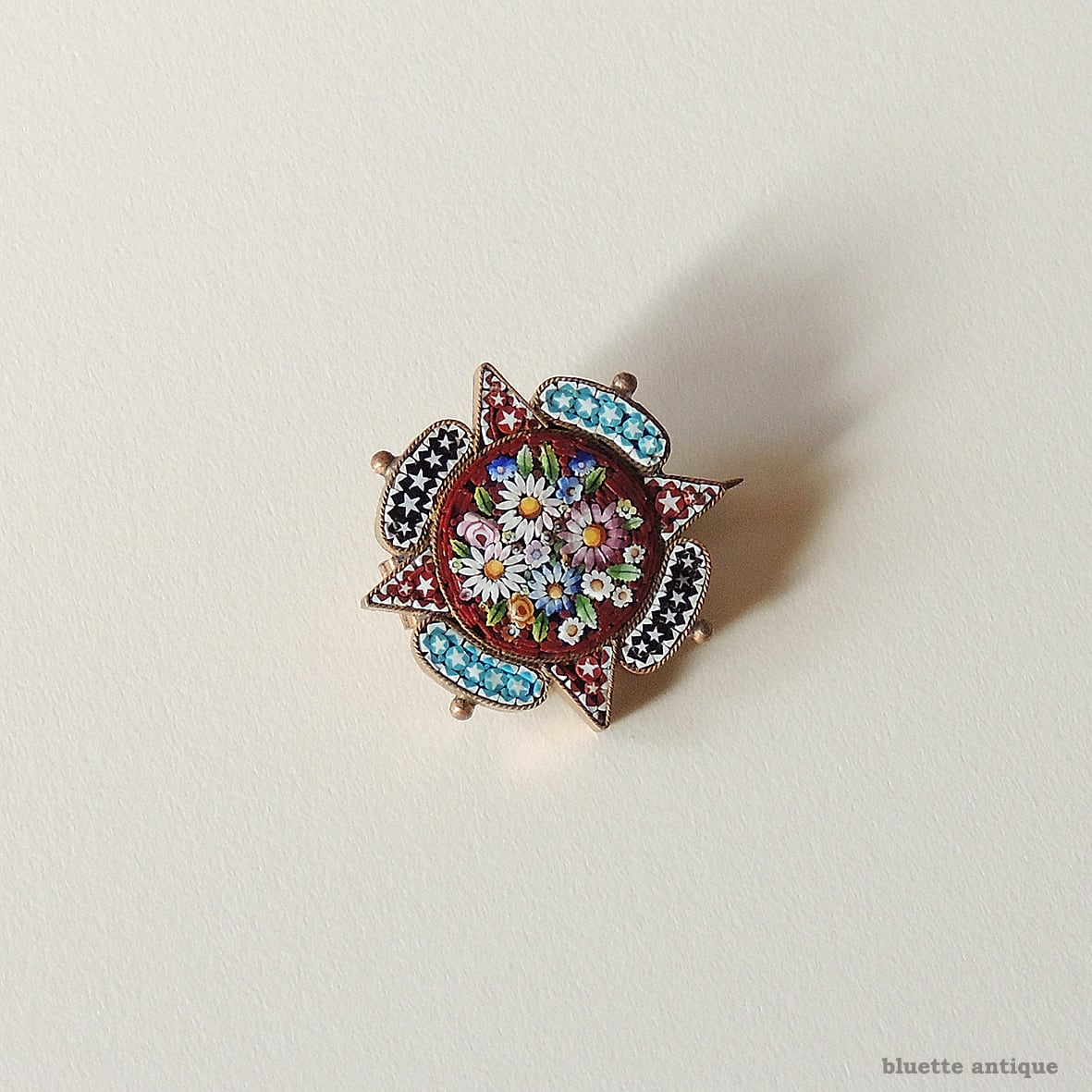 マイクロモザイクのブローチは様々ありますが、こちらは細かな手作業を感じられる作品です。